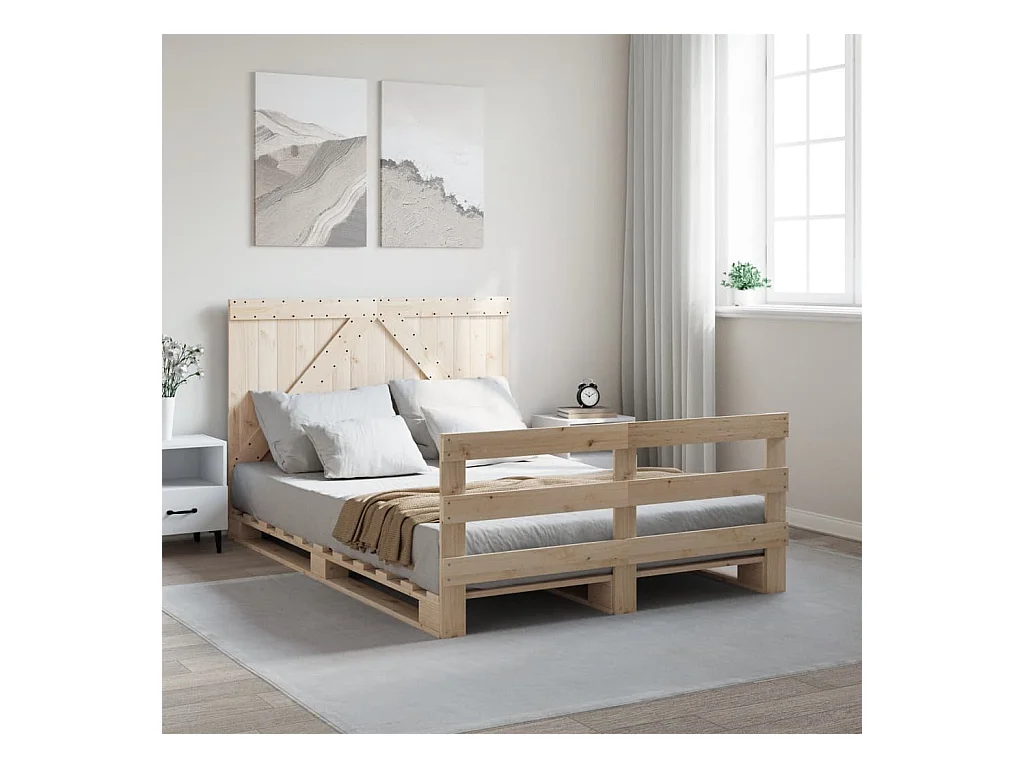 Cadre de lit avec tête de lit 140x200 bois de pin massif