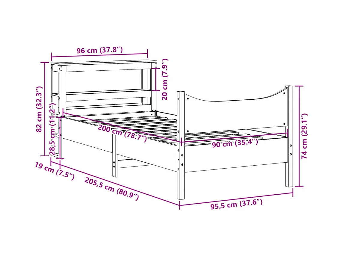 Cadre de lit avec tête de lit 90x200 cm bois de pin massif