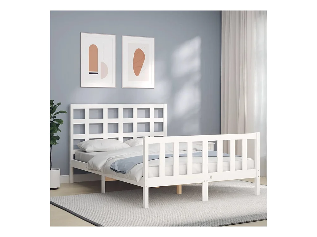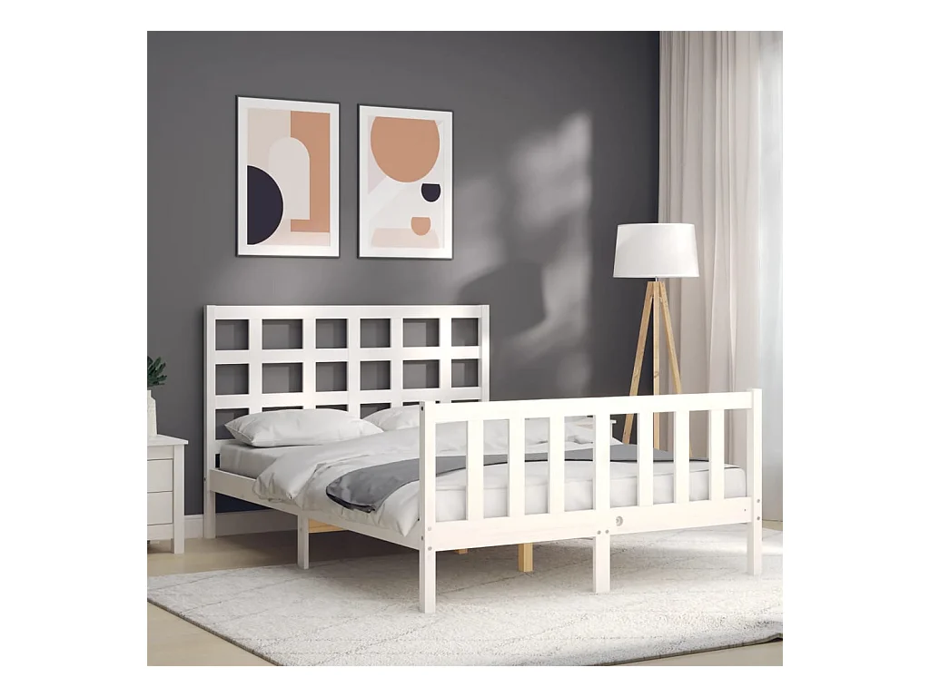 Cadre de lit avec tête de lit blanc 120x200 bois massif