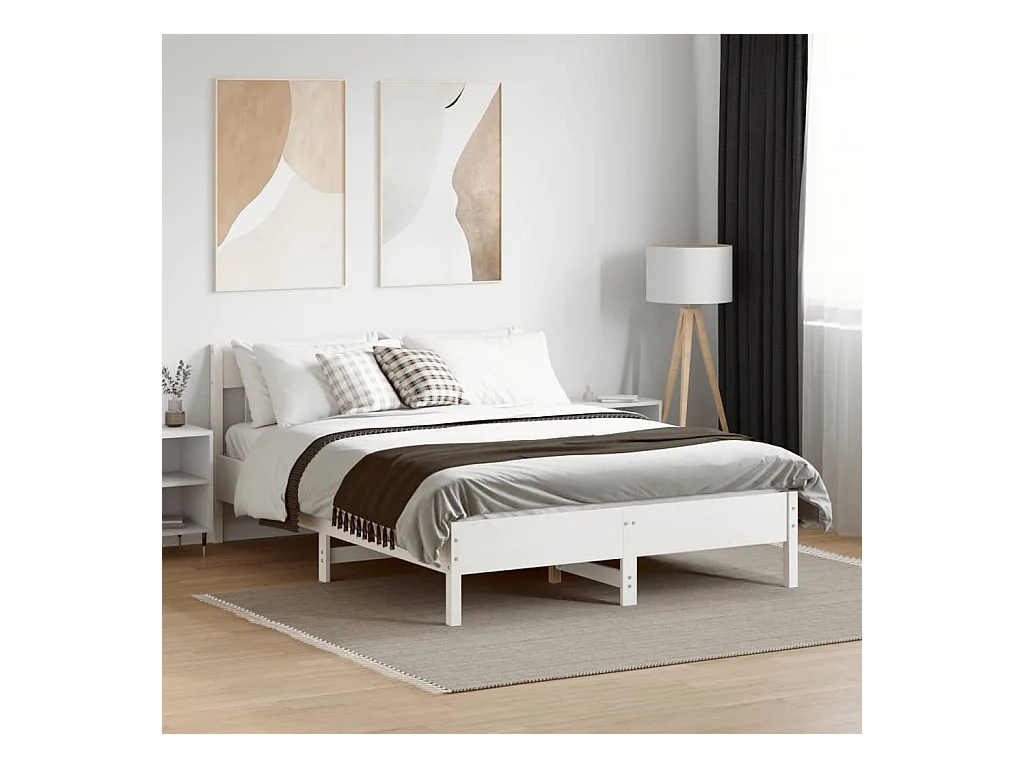 Cadre de lit avec tête de lit blanc 120x200 bois pin massif