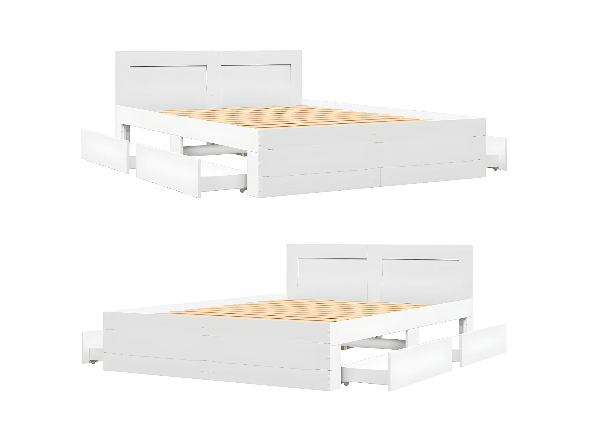 Cadre de lit avec tête de lit blanc 120x200cm bois d'ingénierie
