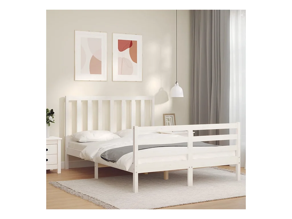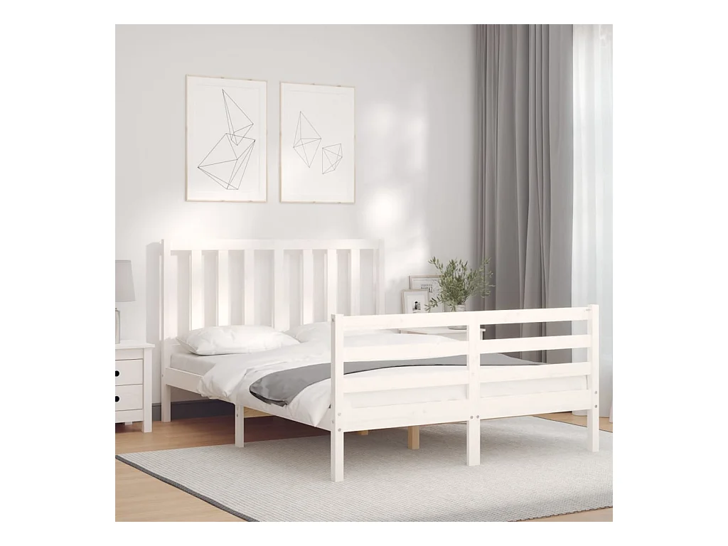 Cadre de lit avec tête de lit blanc 140x190 bois massif
