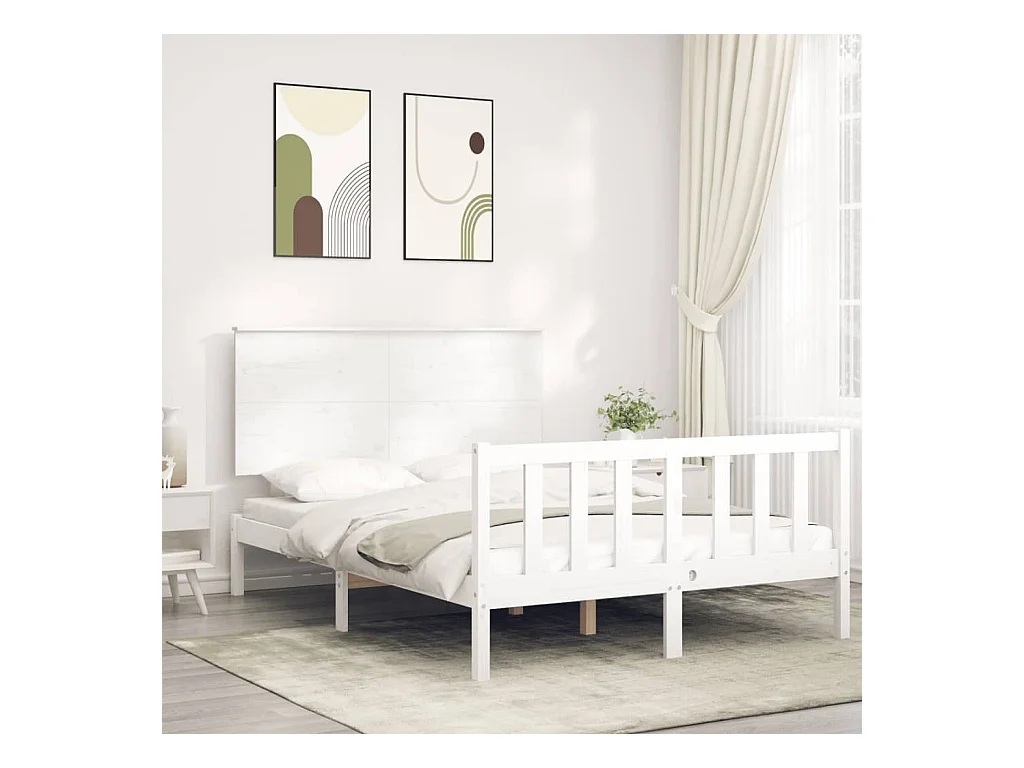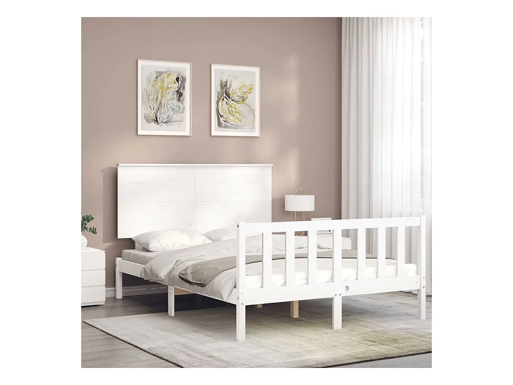 Cadre de lit avec tête de lit blanc 140x190 bois massif