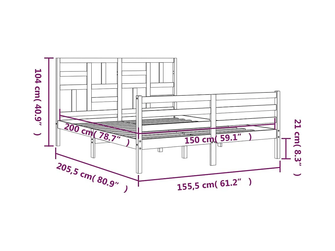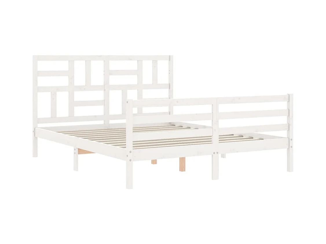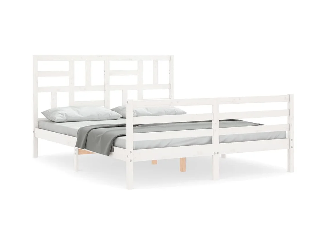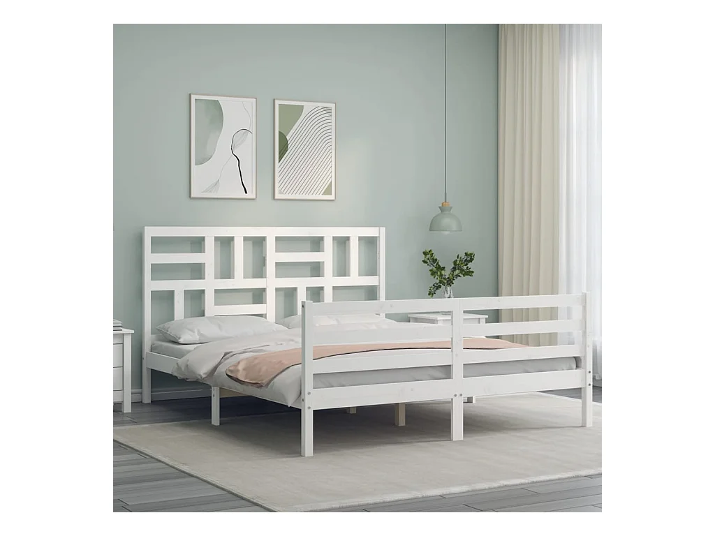 Cadre de lit avec tête de lit blanc King Size bois massif