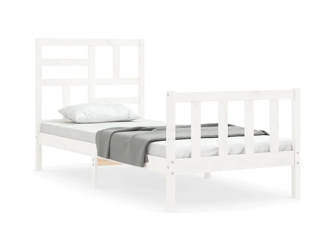 Cadre de lit avec tête de lit blanc simple bois massif