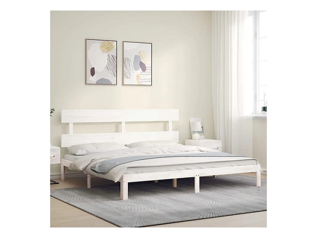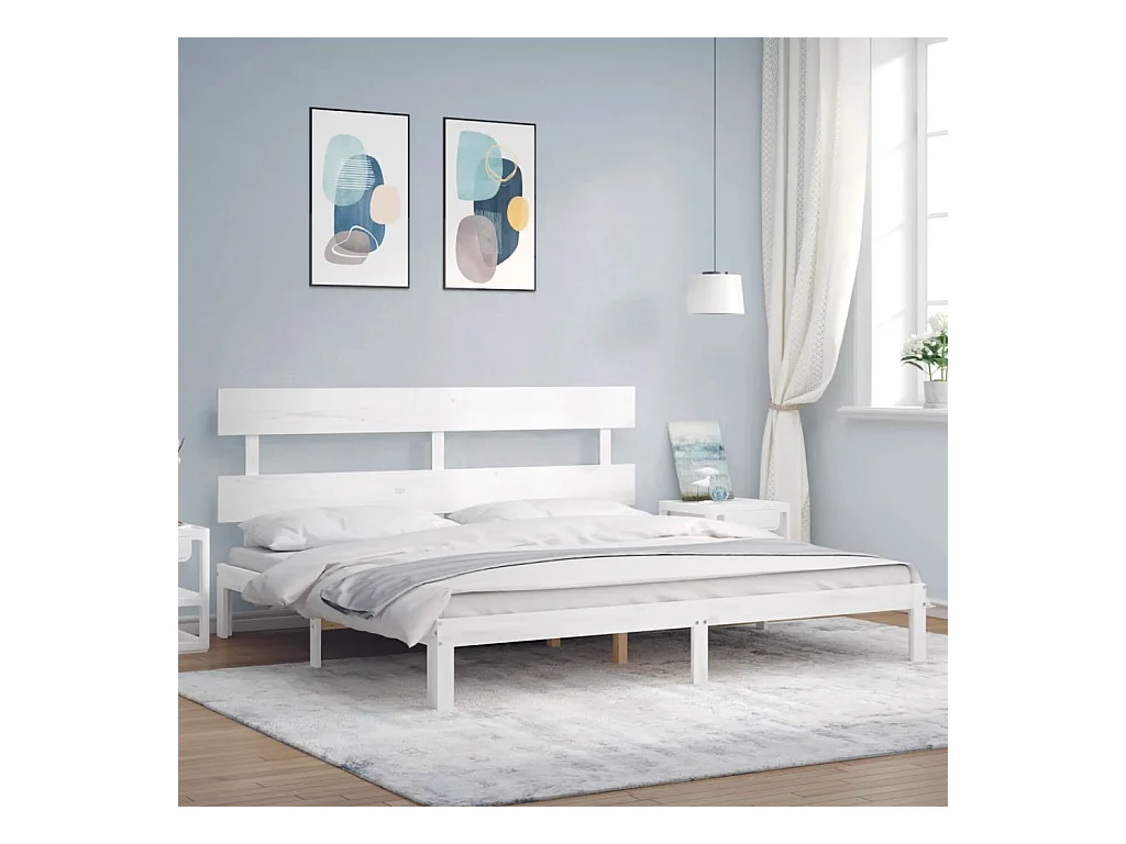 Cadre de lit avec tête de lit blanc Super King Size bois massif