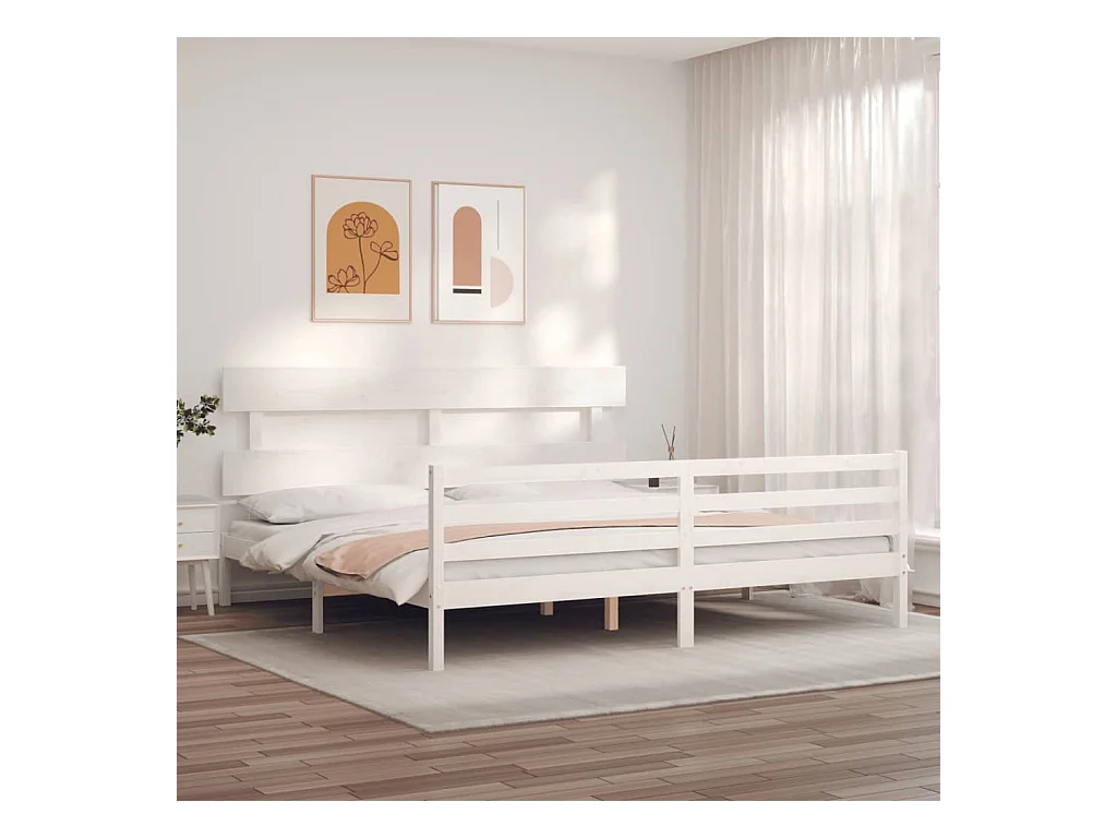 Cadre de lit avec tête de lit blanc Super King Size bois massif