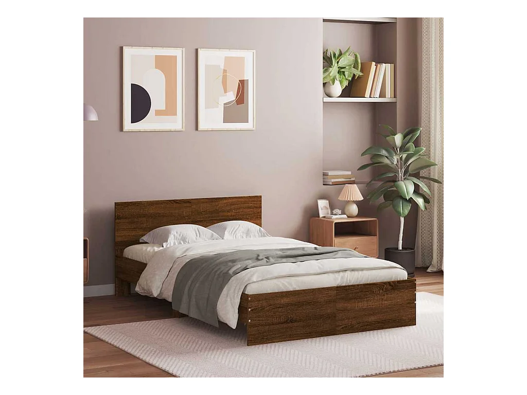 Lit double chêne fumé 140x190 cm bois d'ingénierie FR47484