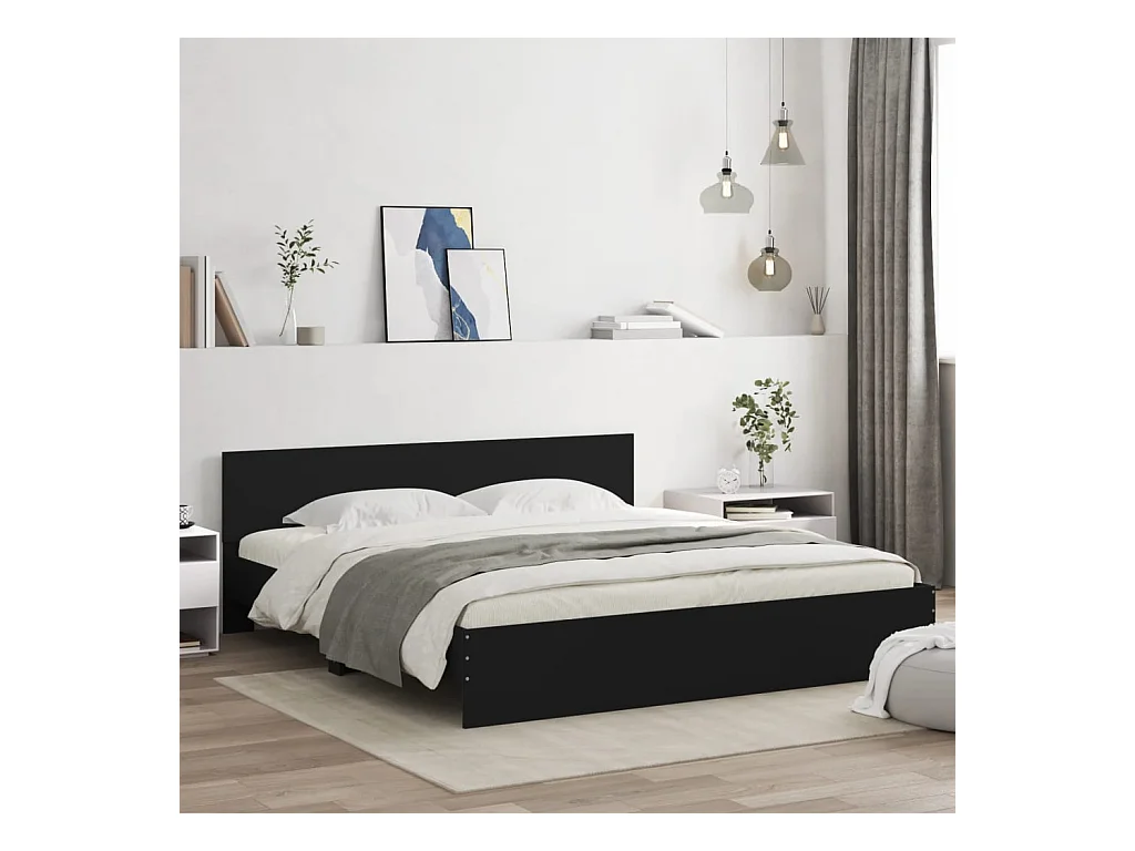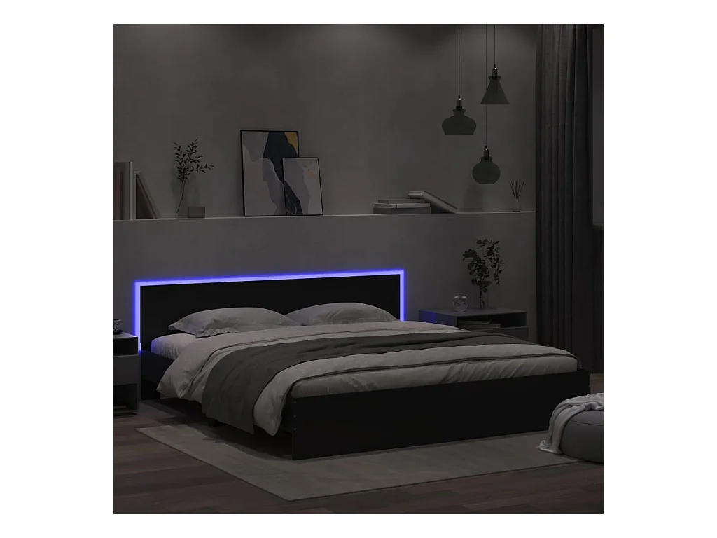 Cadre de lit avec tête de lit et LED noir 180x200 cm