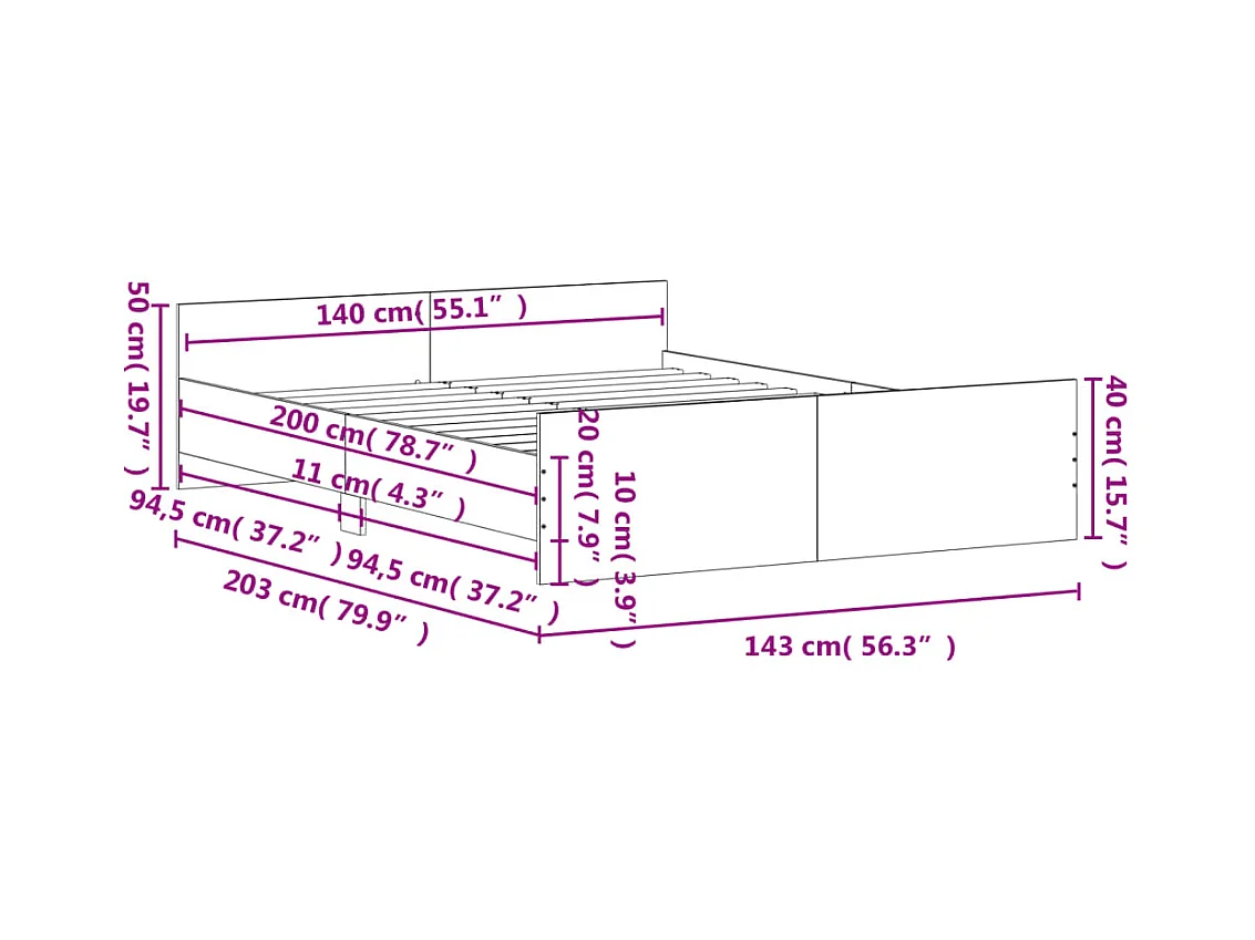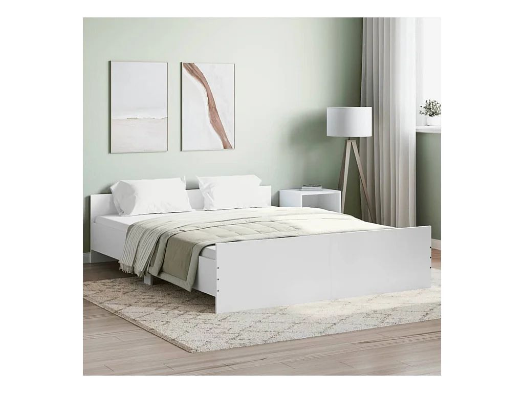 Cadre de lit avec tête de lit et pied de lit blanc 140x200