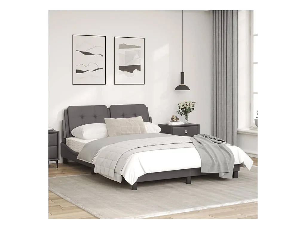 Cadre de lit avec tête de lit Gris 140x190 Similicuir