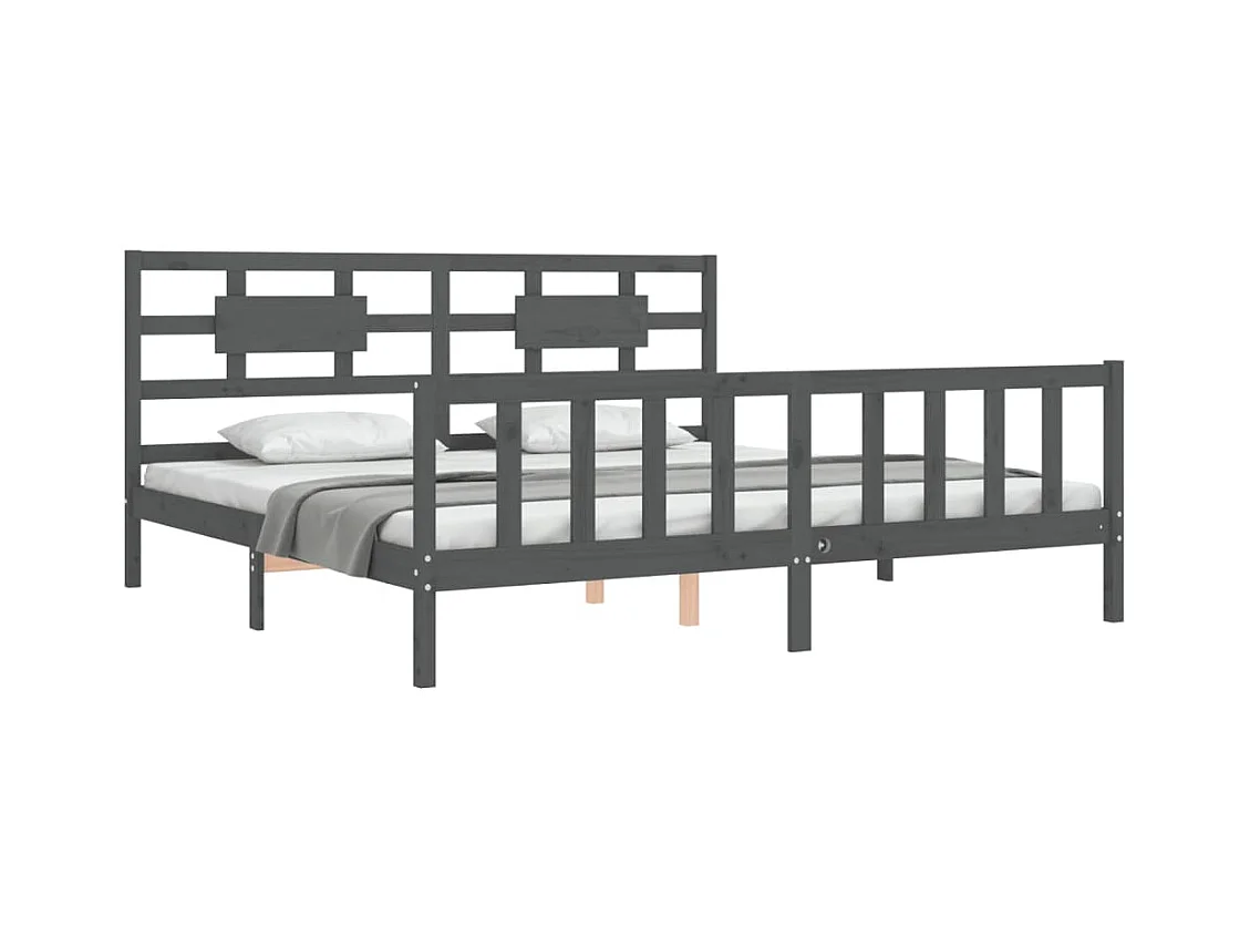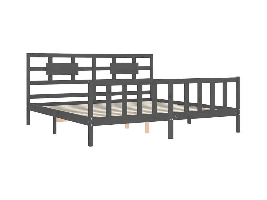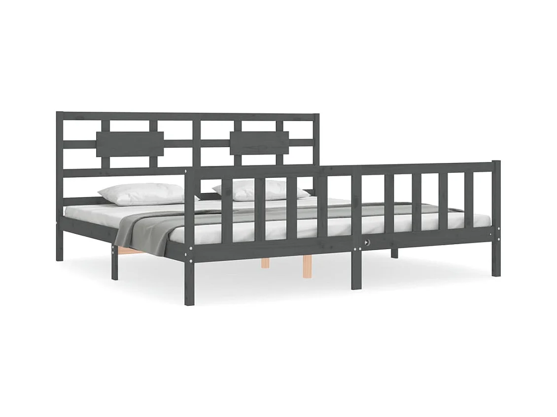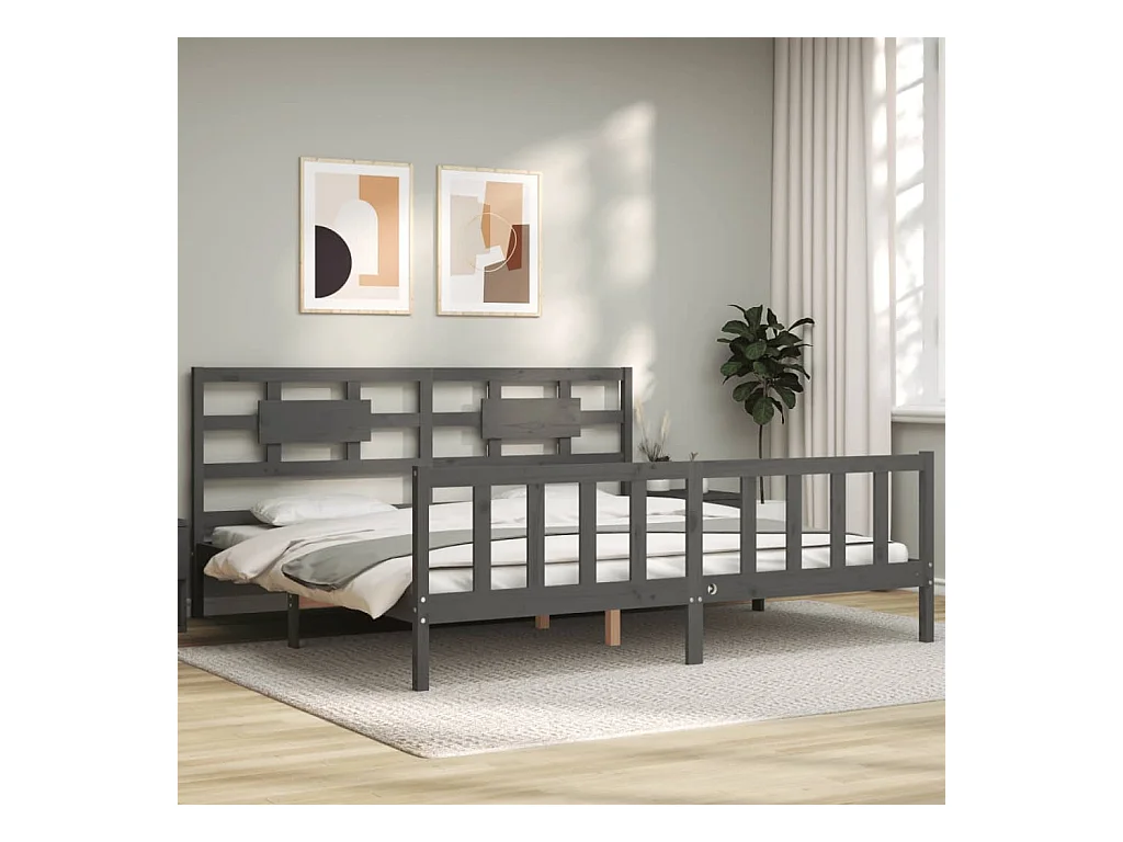 Cadre de lit avec tête de lit gris 200x200 bois massif