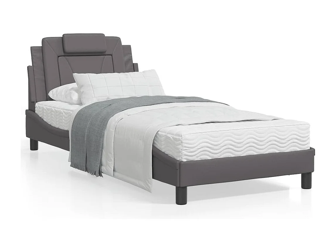 Cadre de lit avec tête de lit Gris 90x200 Similicuir