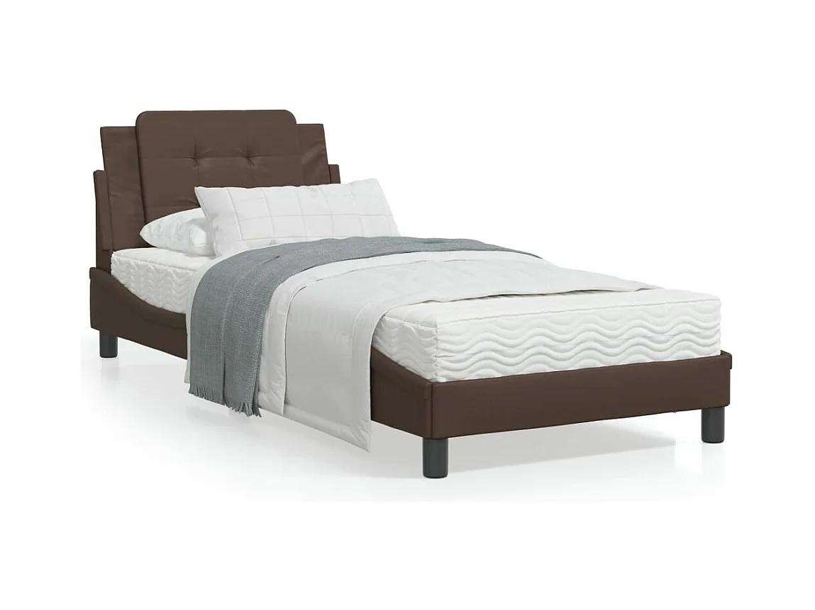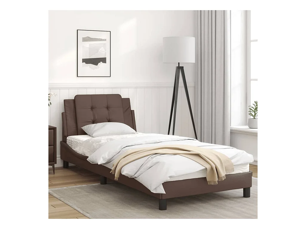 Cadre de lit avec tête de lit marron 90x190 Similicuir