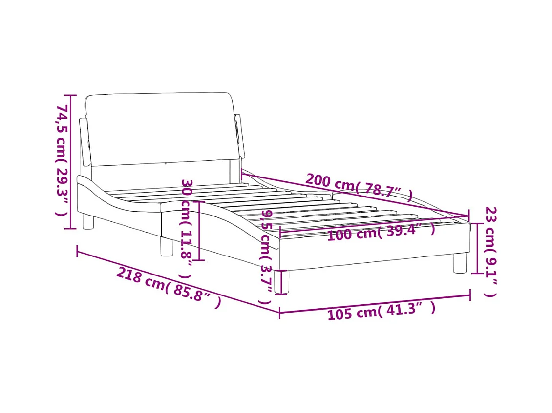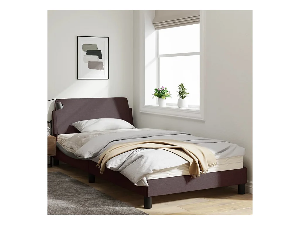 Cadre de lit avec tête de lit Marron foncé 100x200 Tissu