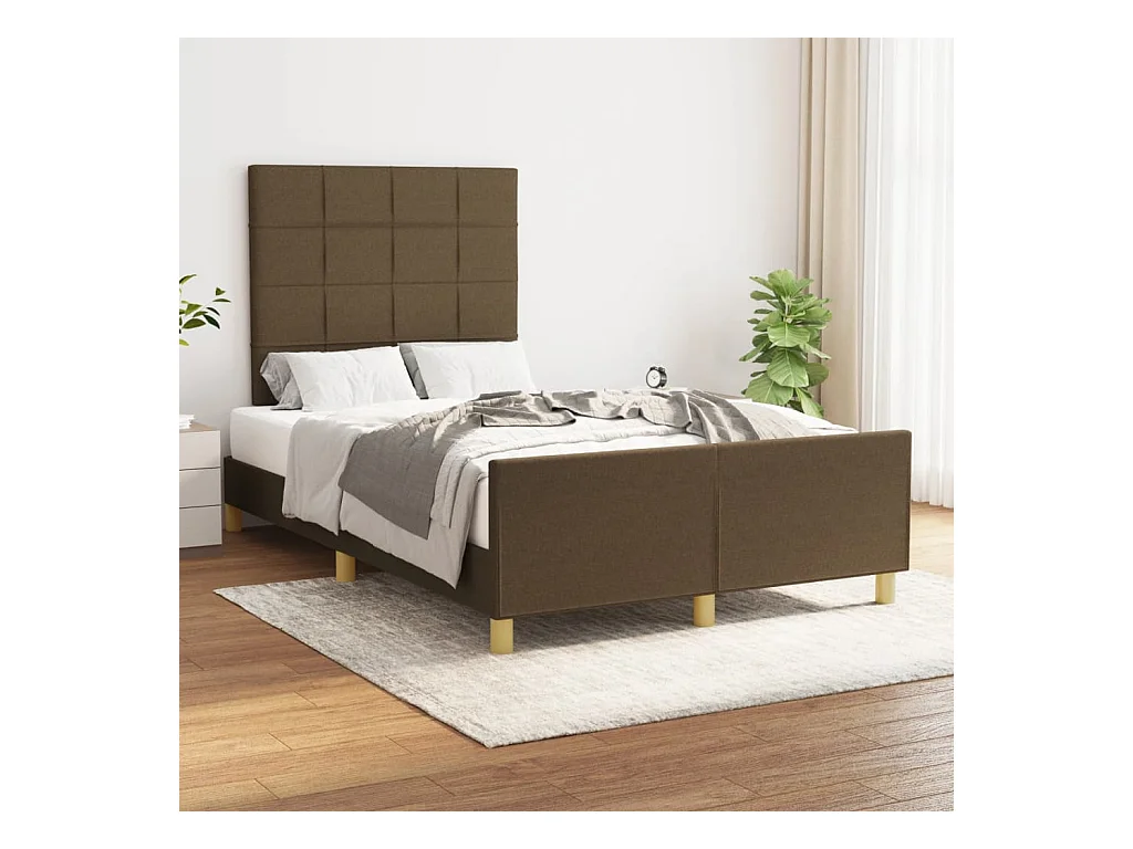 Cadre de lit avec tête de lit marron foncé 120x190 tissu