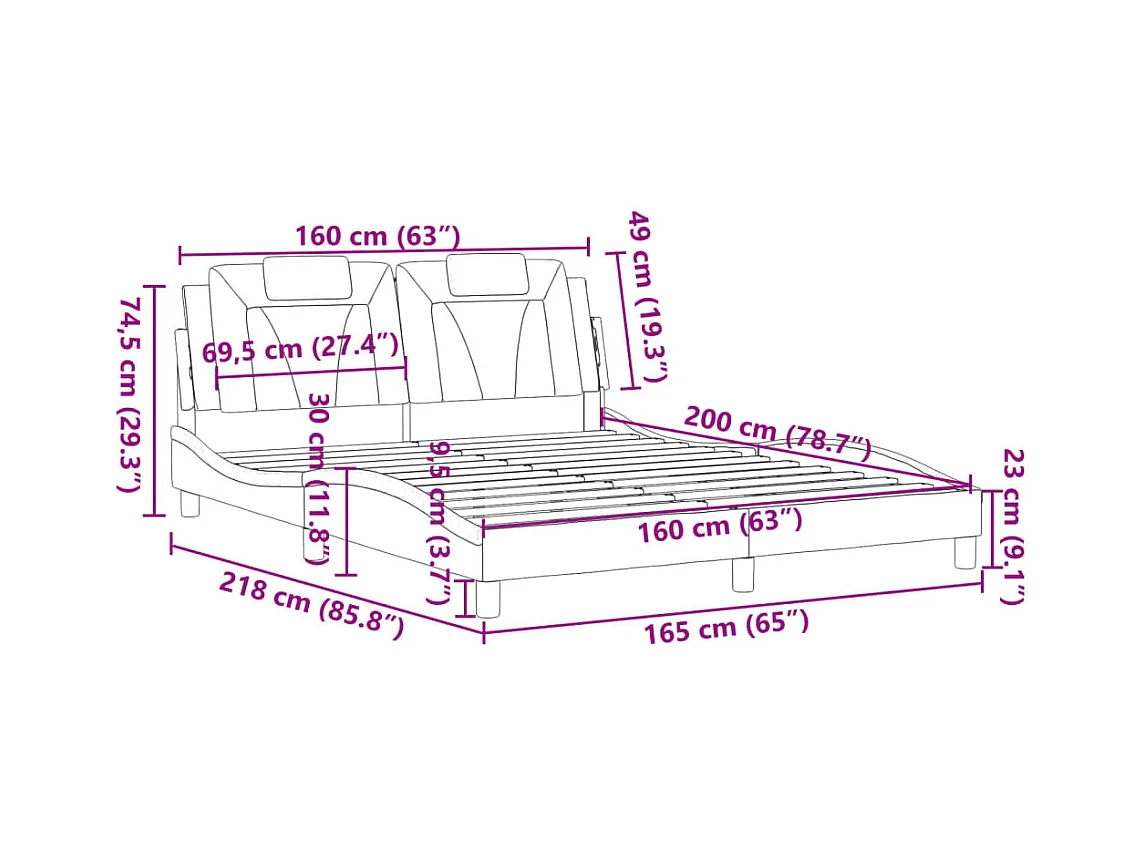 Cadre de lit Viana sans matelas noir 160x200 cm similicuir