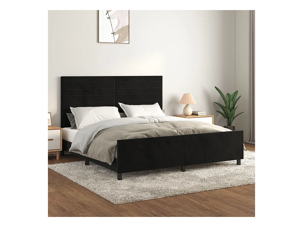 Cadre de lit avec tête de lit Noir 180x200 Velours