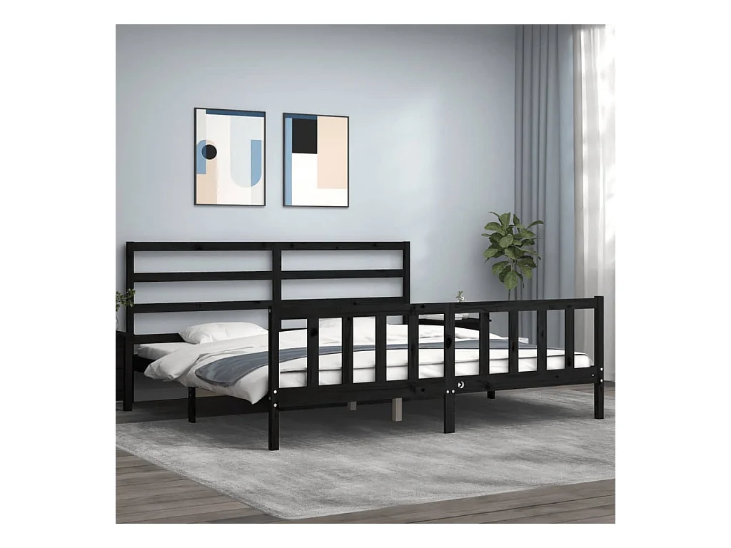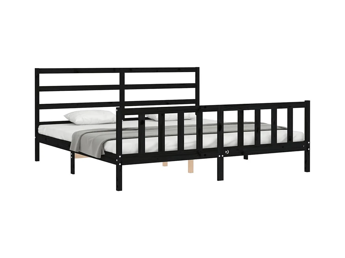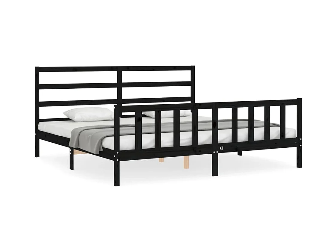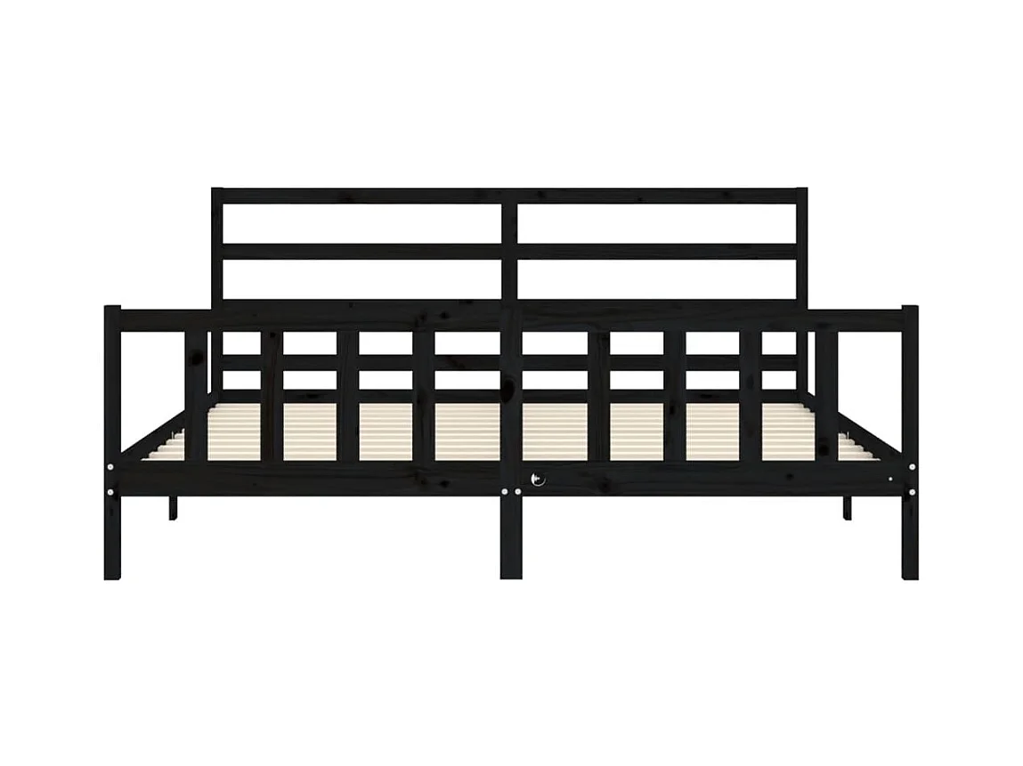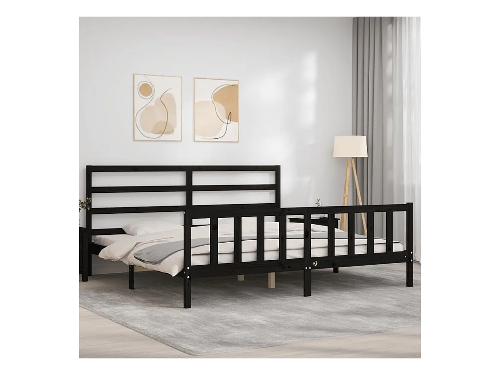 Cadre de lit avec tête de lit noir 200x200 bois massif