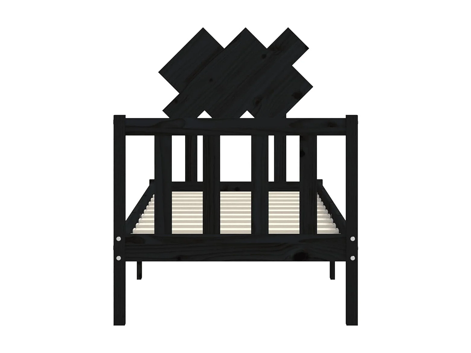 Cadre de lit avec tête de lit noir petit simple bois massif