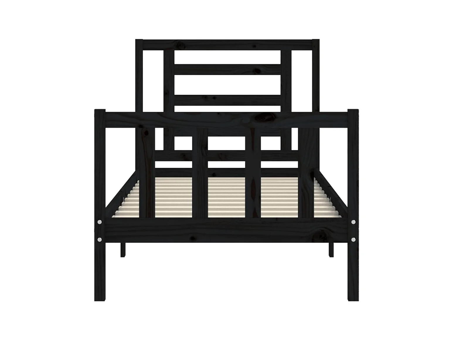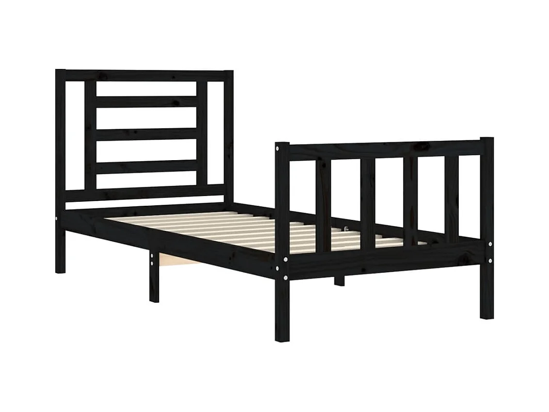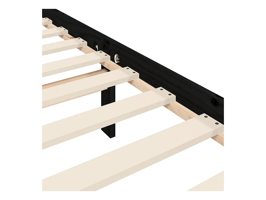 Cadre de lit avec tête de lit noir petit simple bois massif
