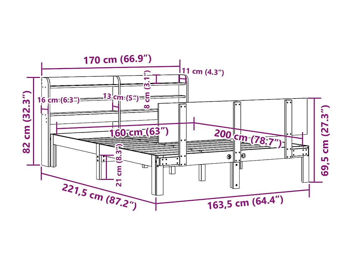 Cadre de lit avec tête de lit sans matelas 160x200 cm