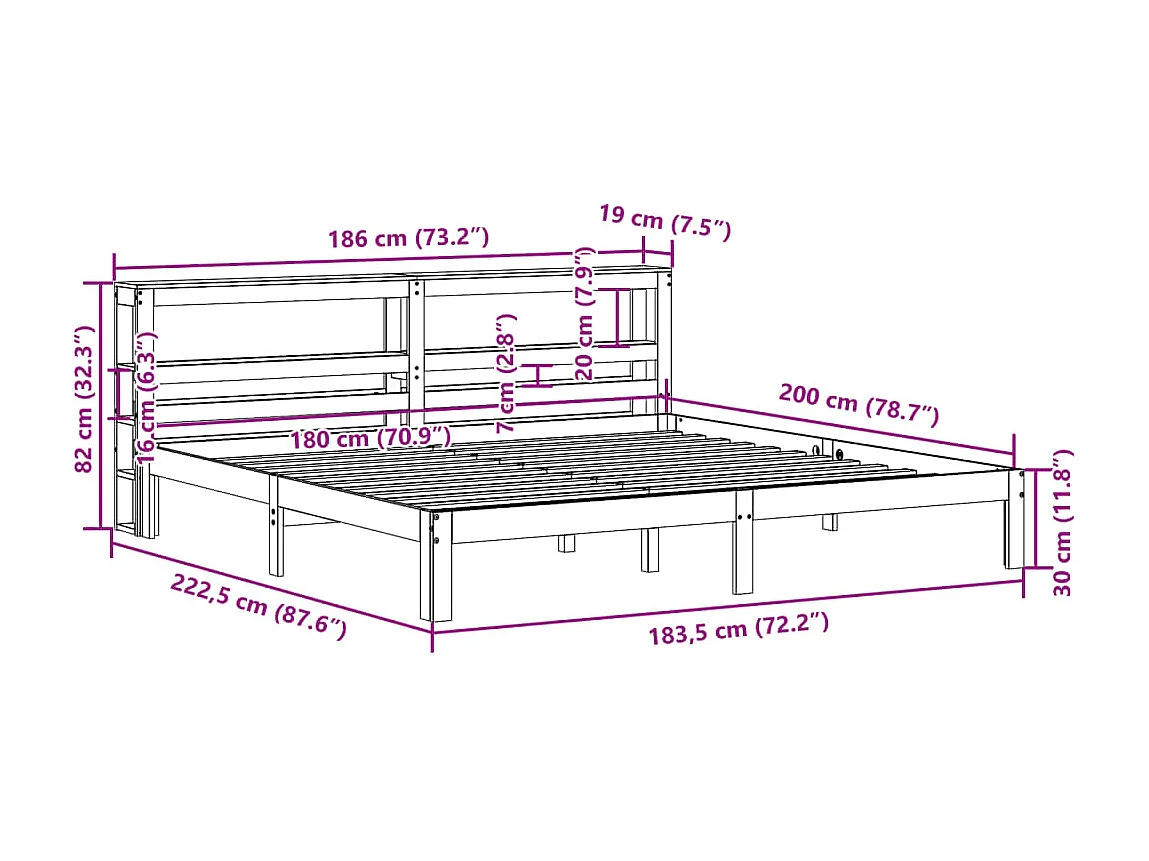 Cadre de lit avec tête de lit sans matelas 180x200 cm