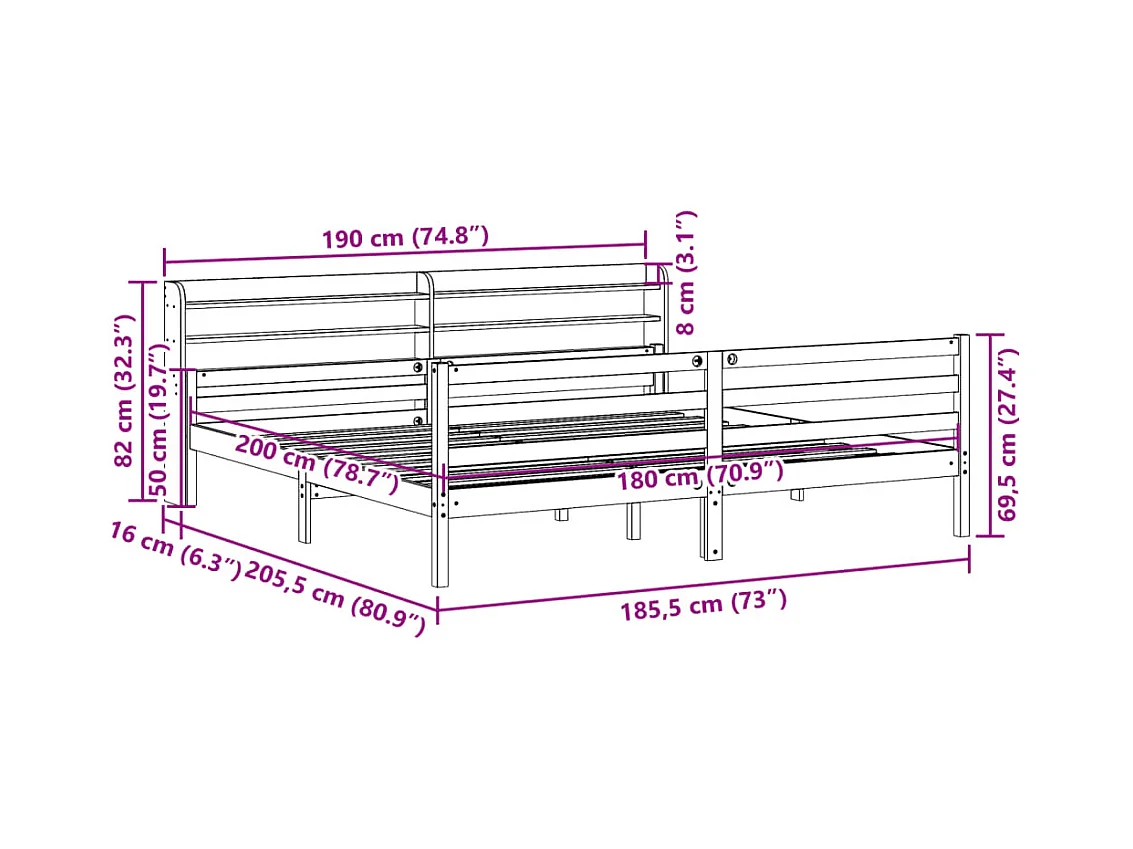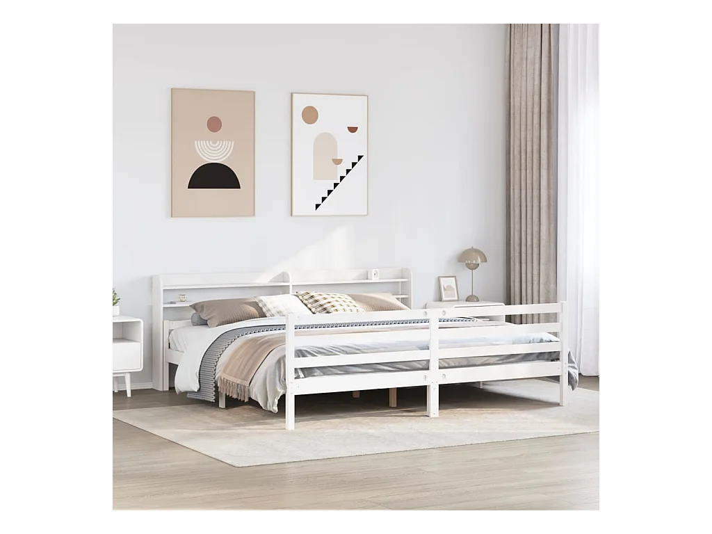 Cadre de lit avec tête de lit sans matelas blanc 180x200 cm