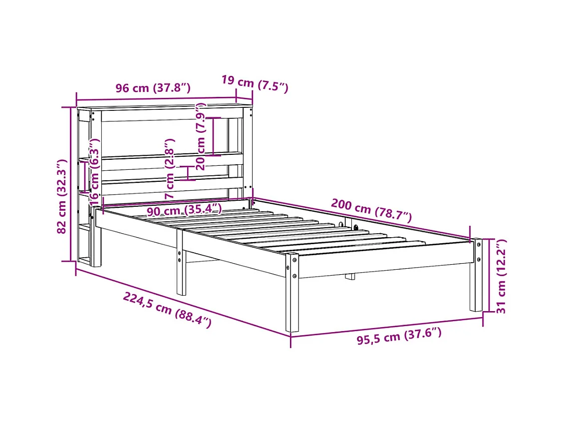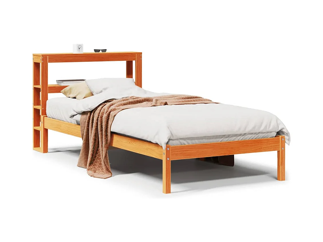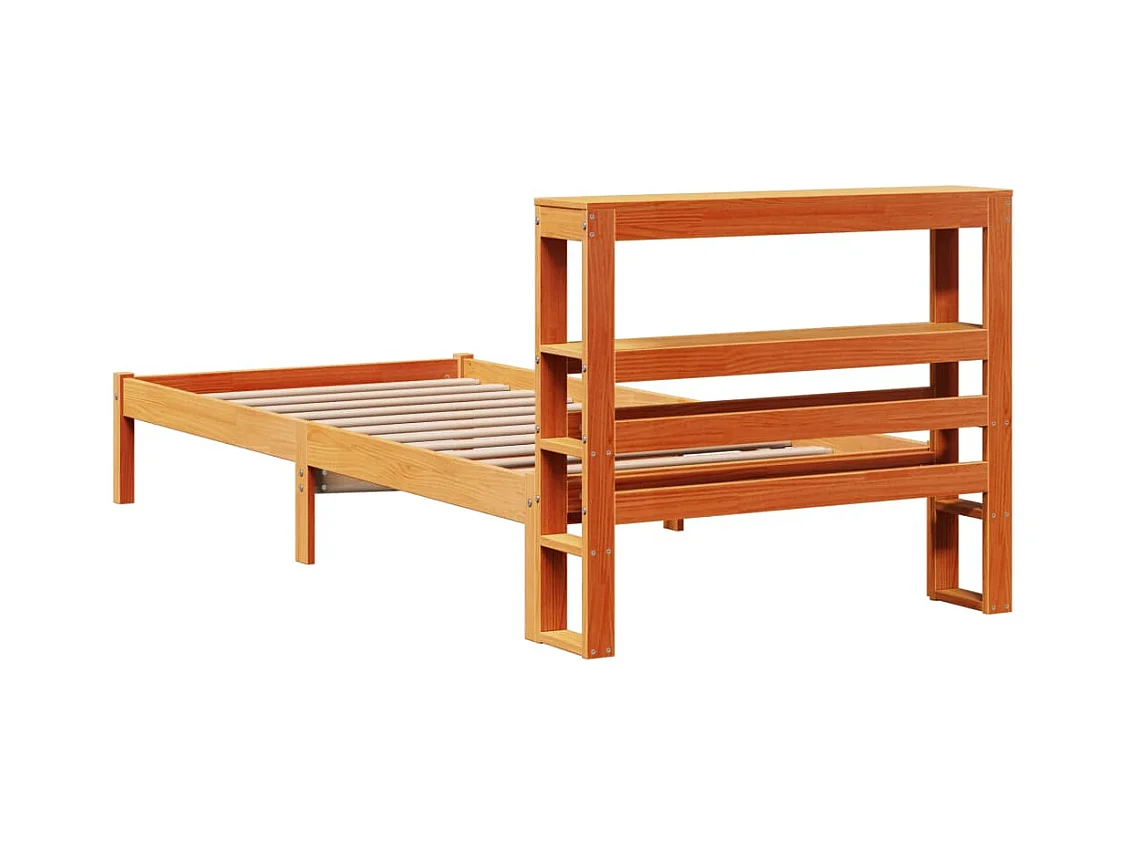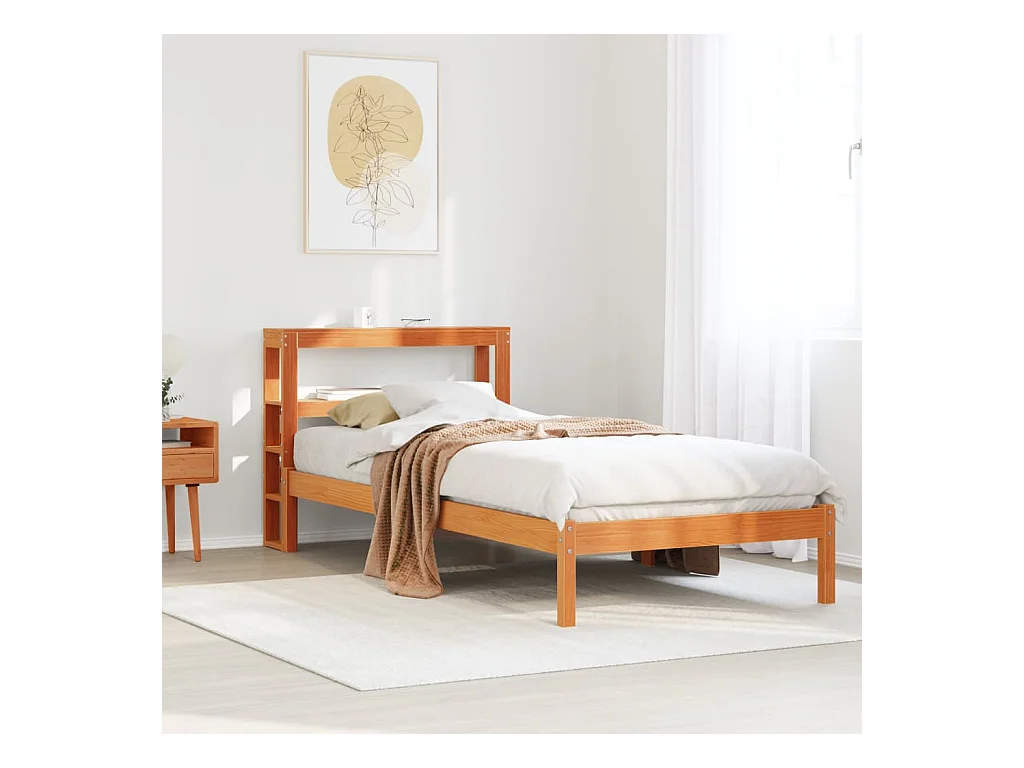 Lit bibliothèque sans matelas cire marron 90x200 cm pin massif