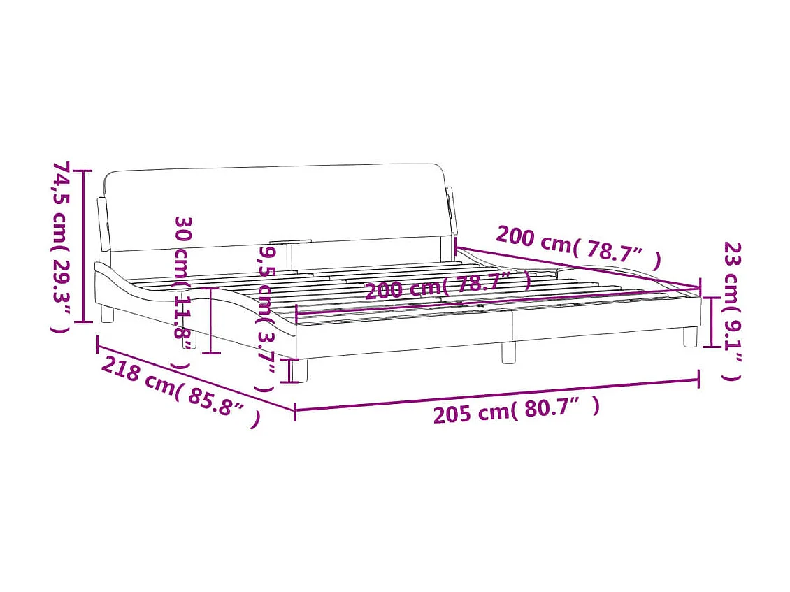 Cadre de lit avec tête de lit Taupe 200x200 Tissu