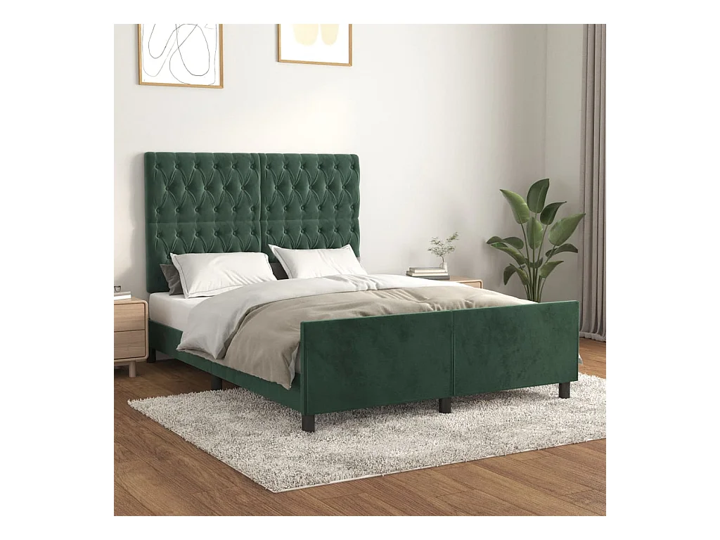 Cadre de lit avec tête de lit Vert foncé 140x200 cm Velours