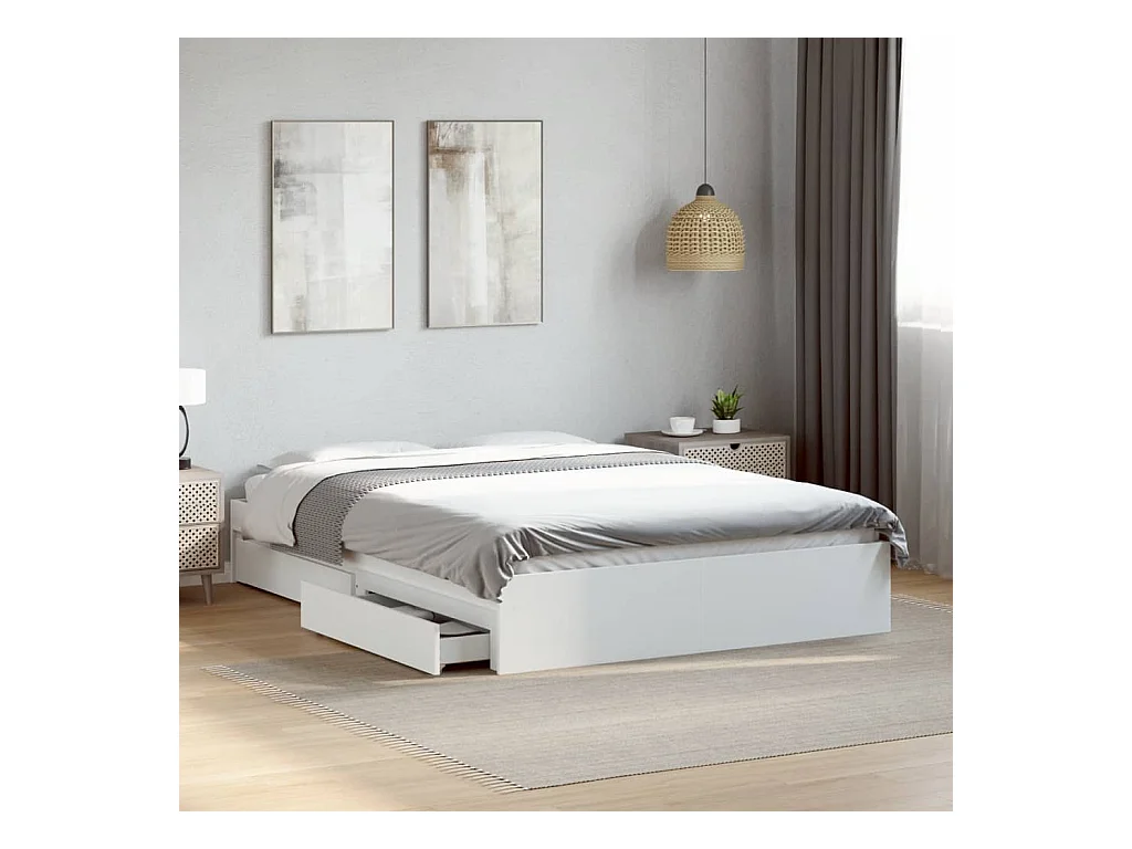 Cadre de lit avec tiroirs sans matelas blanc 135x190 cm