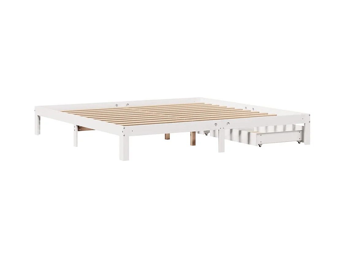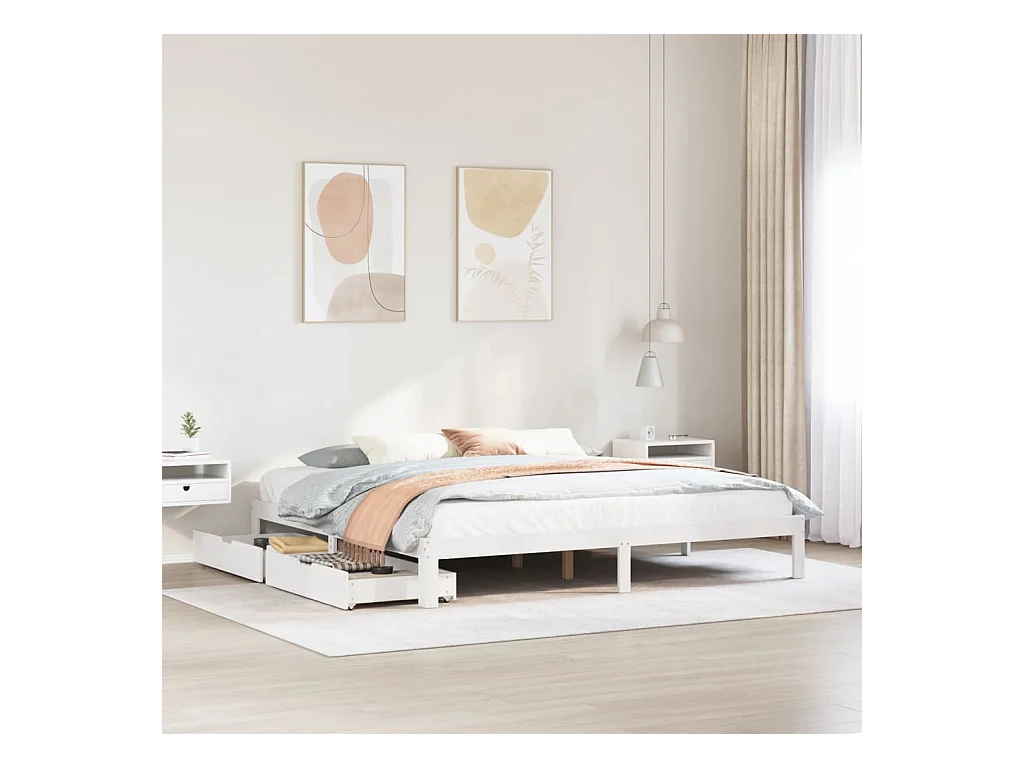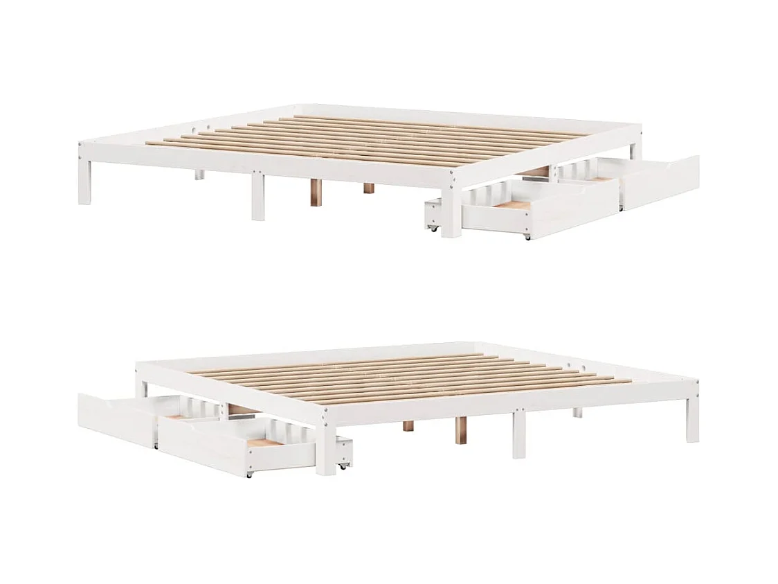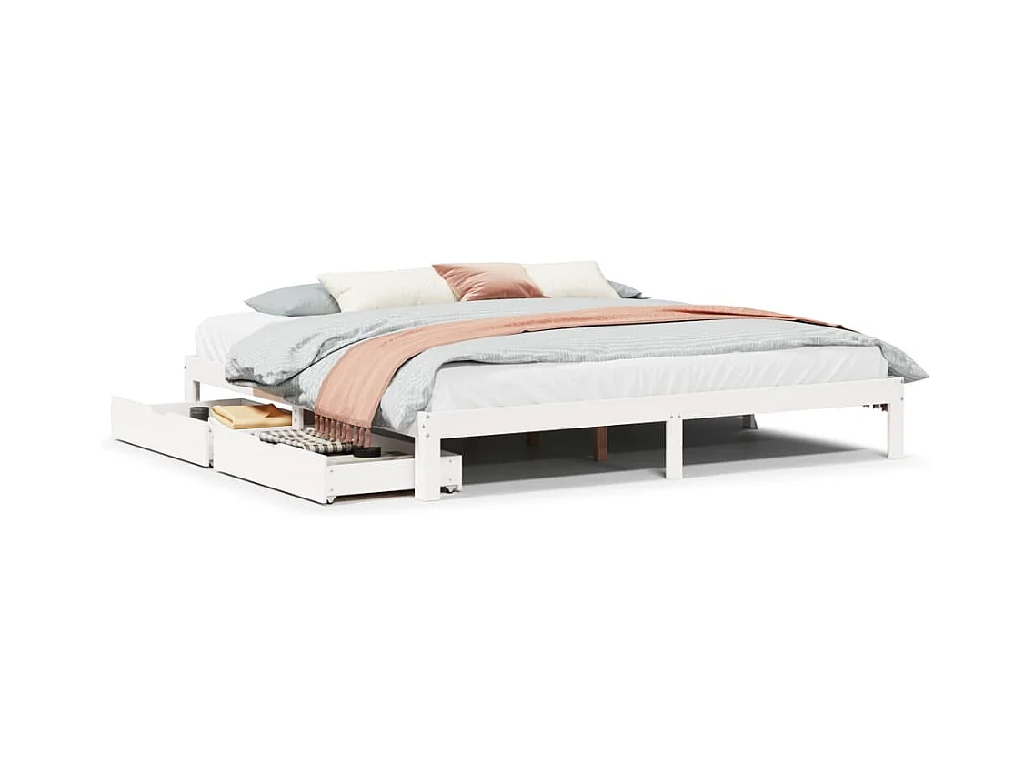 Cadre de lit avec tiroirs blanc 200x200 cm bois massif de pin