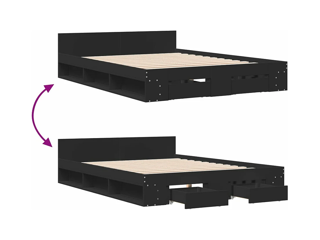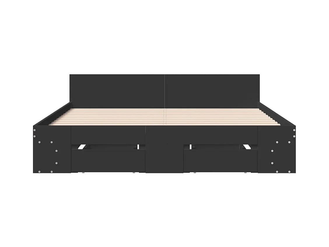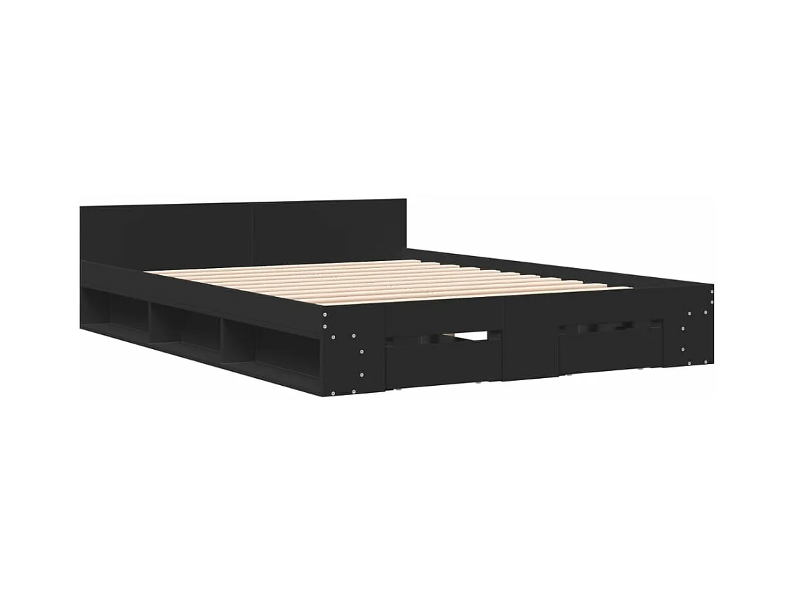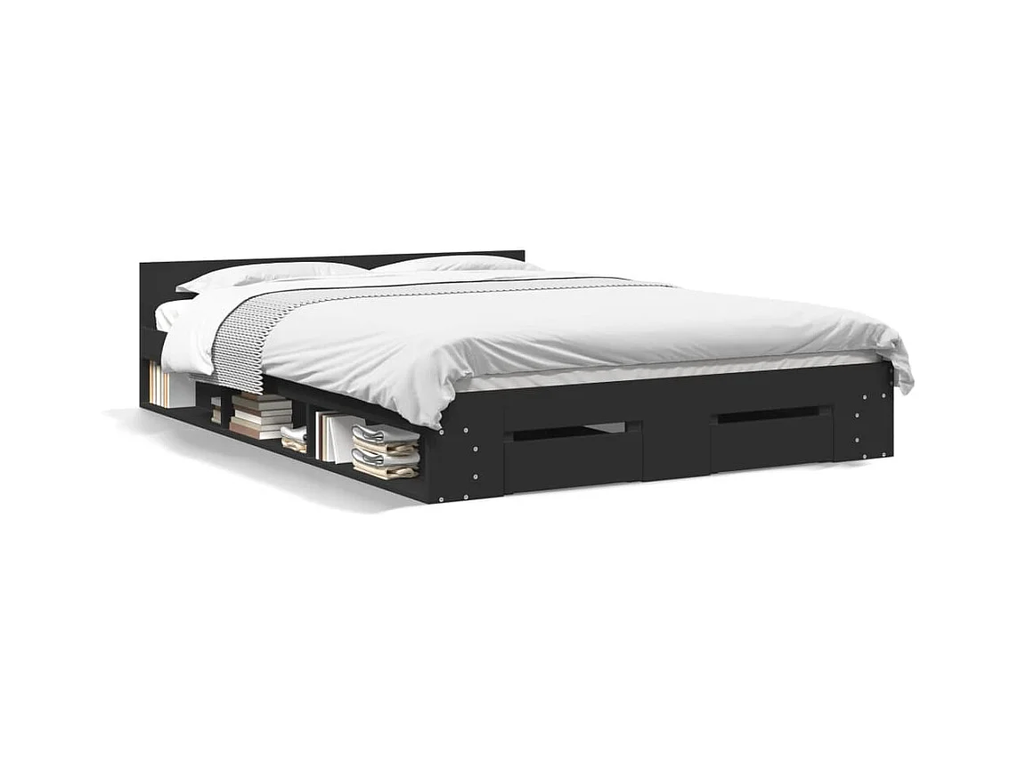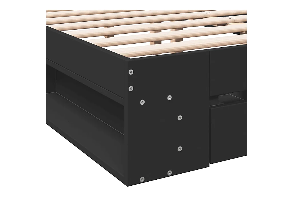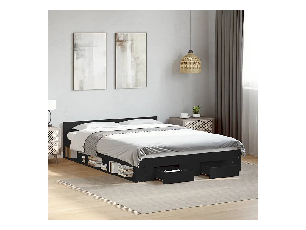 Cadre de lit avec tiroirs noir 150x200 cm bois d'ingénierie