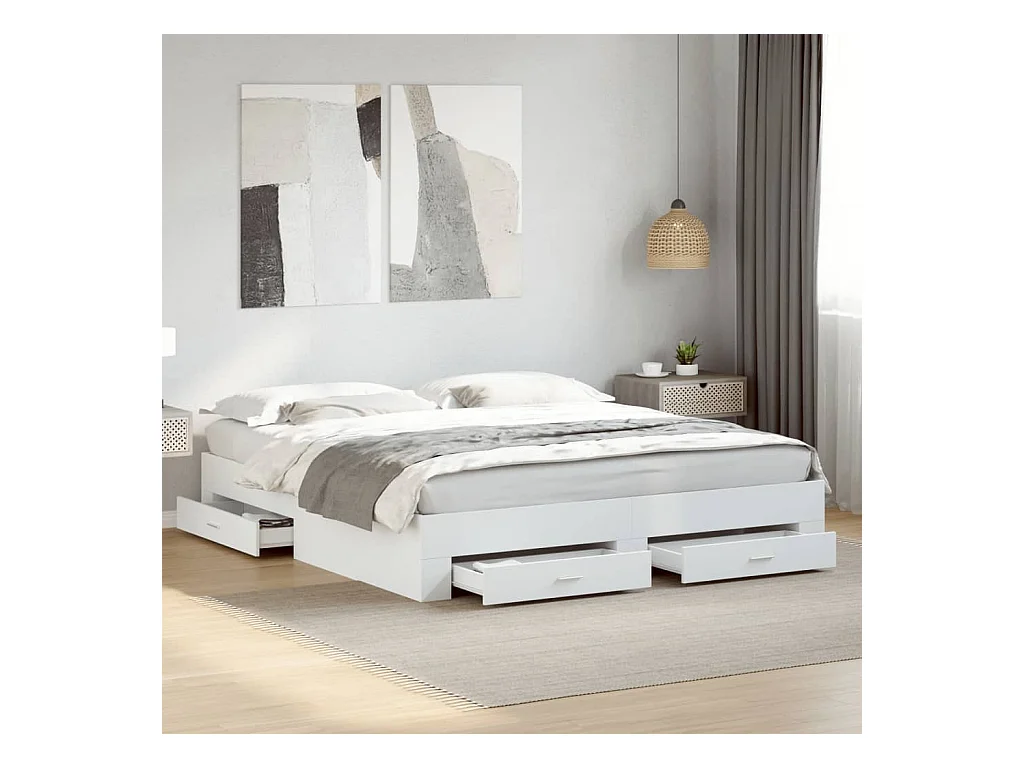 Cadre de lit avec tiroirs sans matelas blanc 200x200 cm