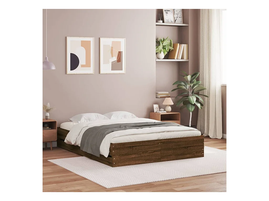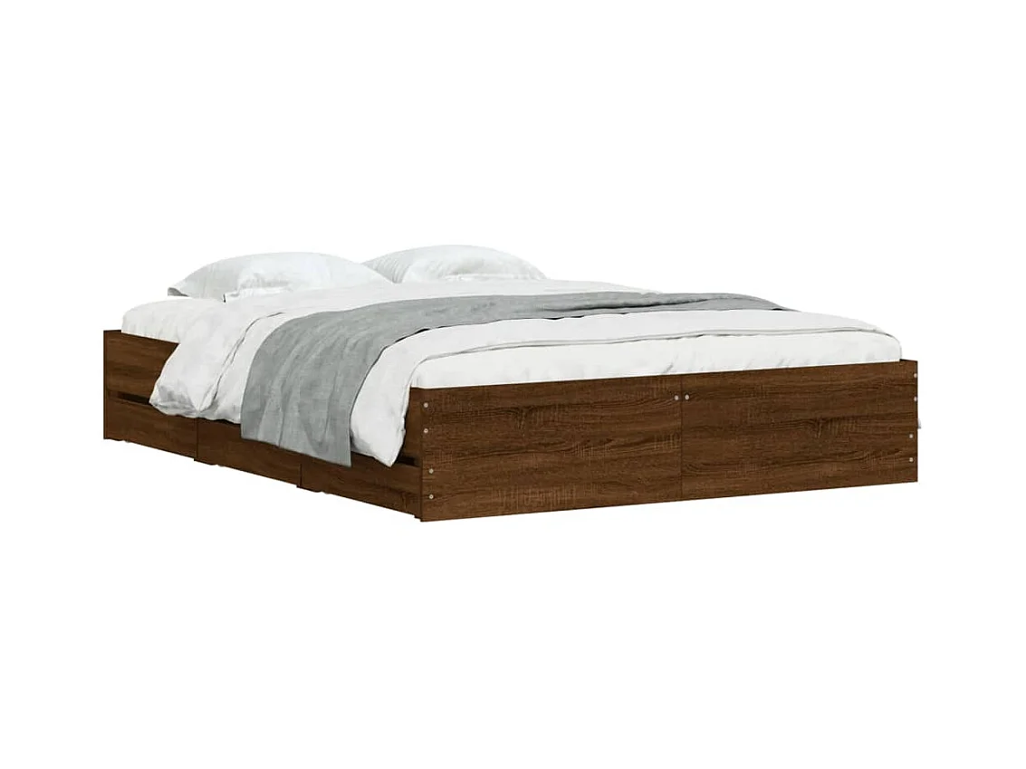 Cadre de lit avec tiroirs sans matelas chêne marron 140x200 cm