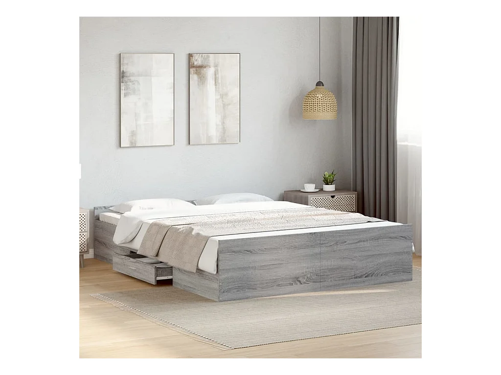 Cadre de lit avec tiroirs sans matelas sonoma gris 140x200 cm