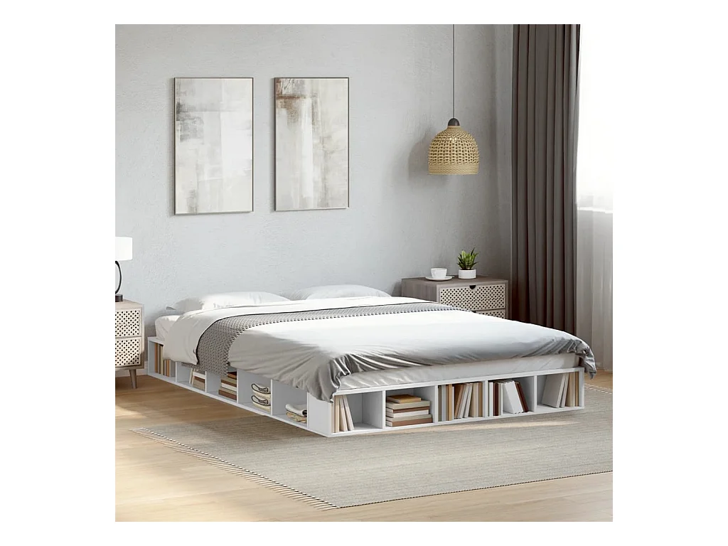 Cadre de lit blanc 160x200 cm bois d'ingénierie