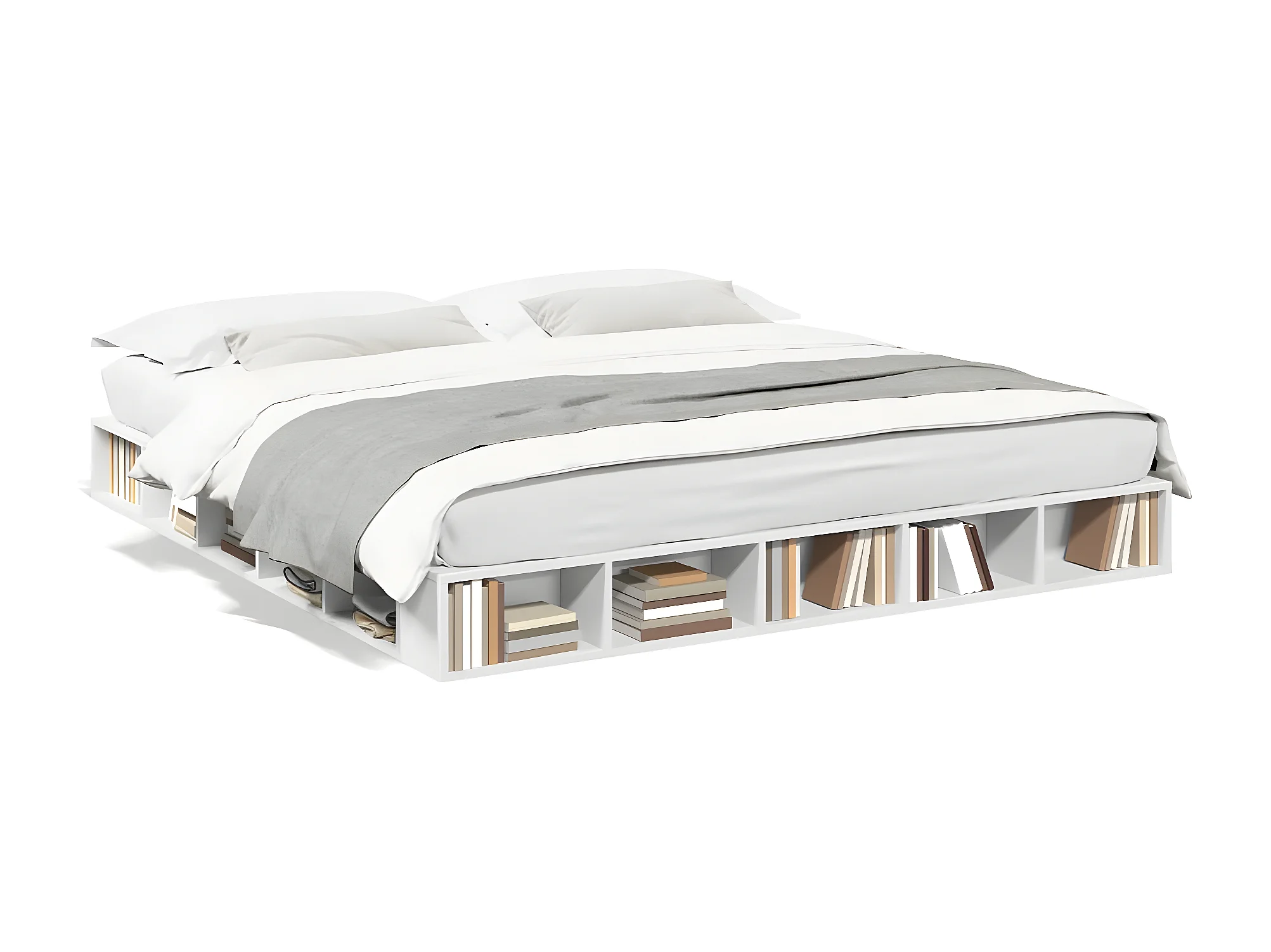 Cadre de lit blanc 200x200 bois d'ingénierie