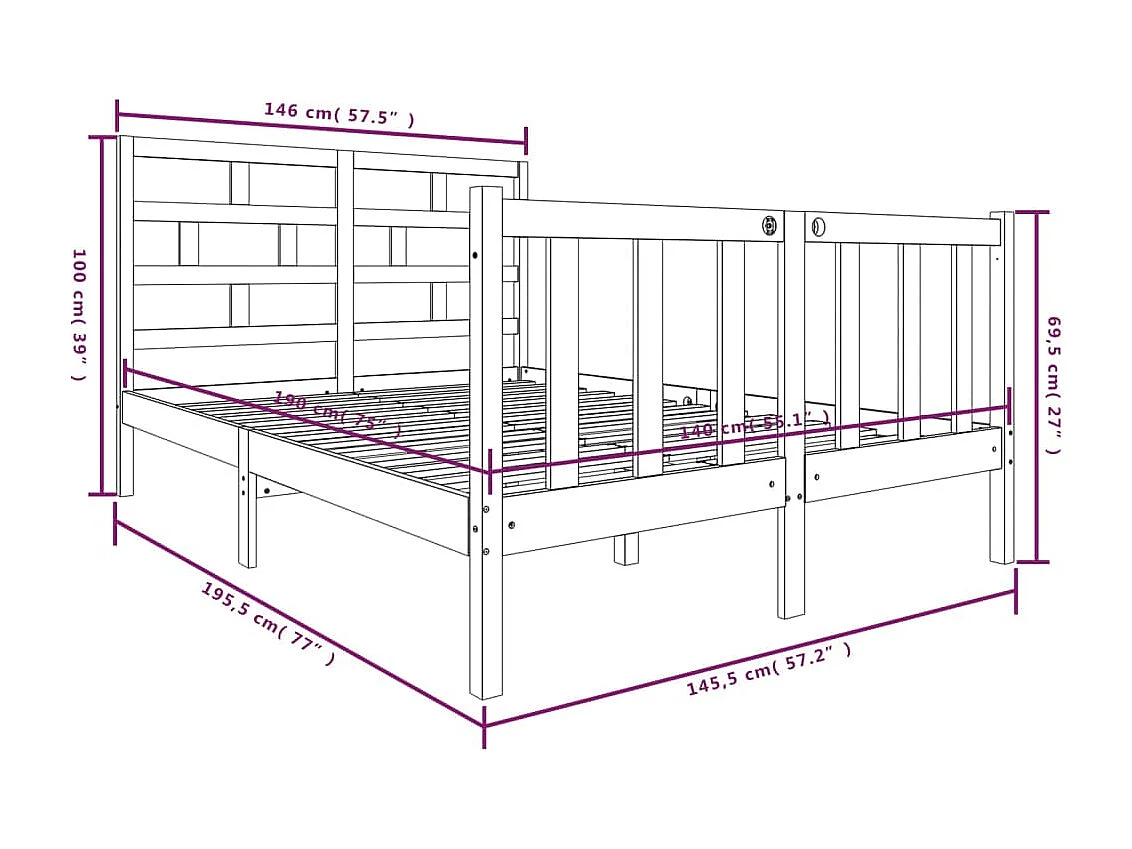 Cadre de lit Blanc Bois de pin massif 140x190 cm