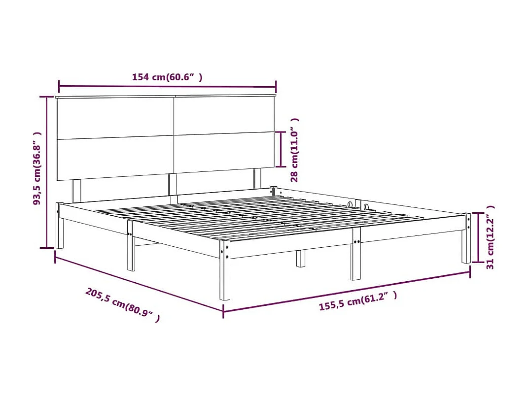 Cadre de lit Blanc Bois massif 150x200 cm Très grand
