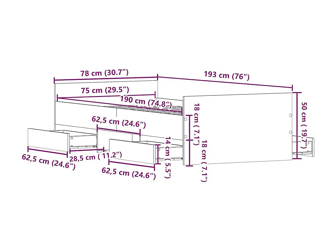 Cadre de lit chêne artisanal 75 x 190 cm Bois d'ingénierie