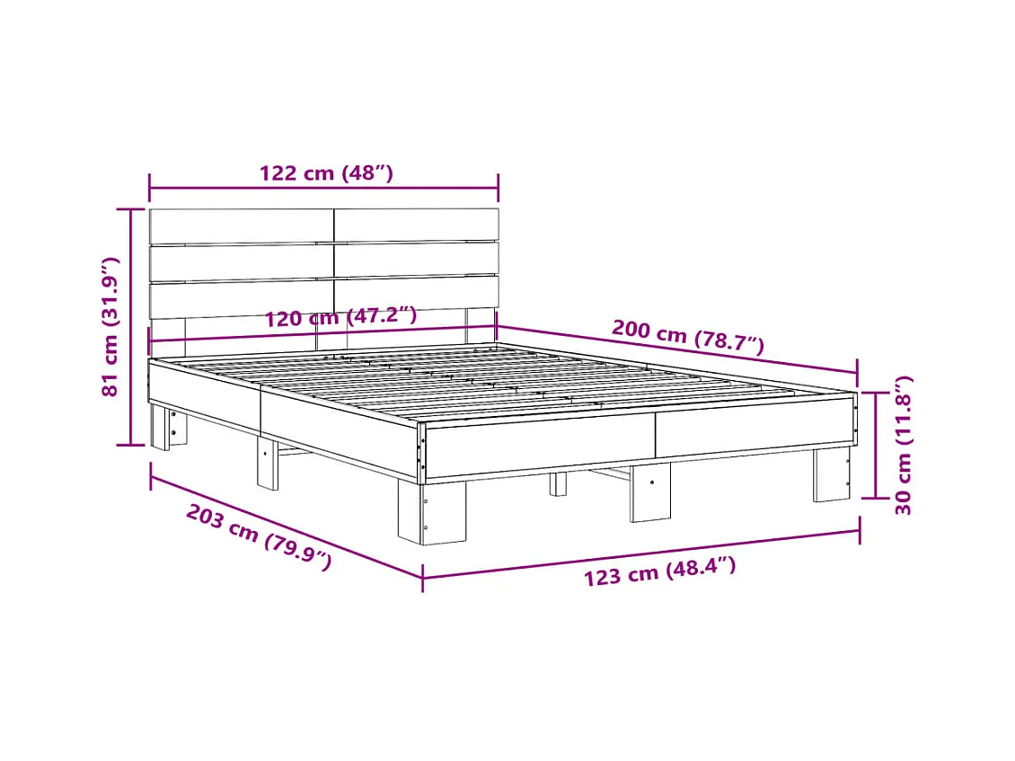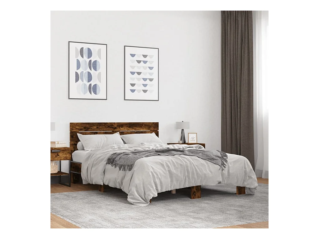 Cadre de lit chêne fumé 120x200 bois d'ingénierie et métal
