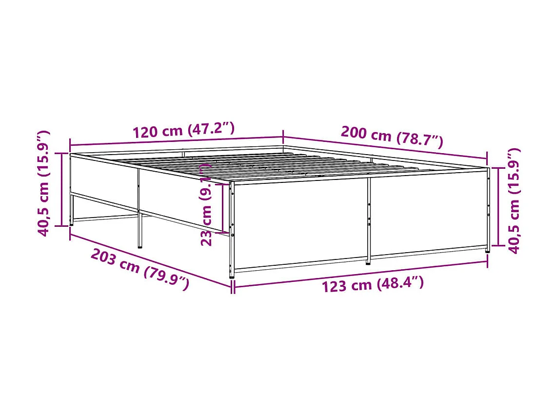 Cadre de lit chêne fumé 120x200 bois d'ingénierie et métal