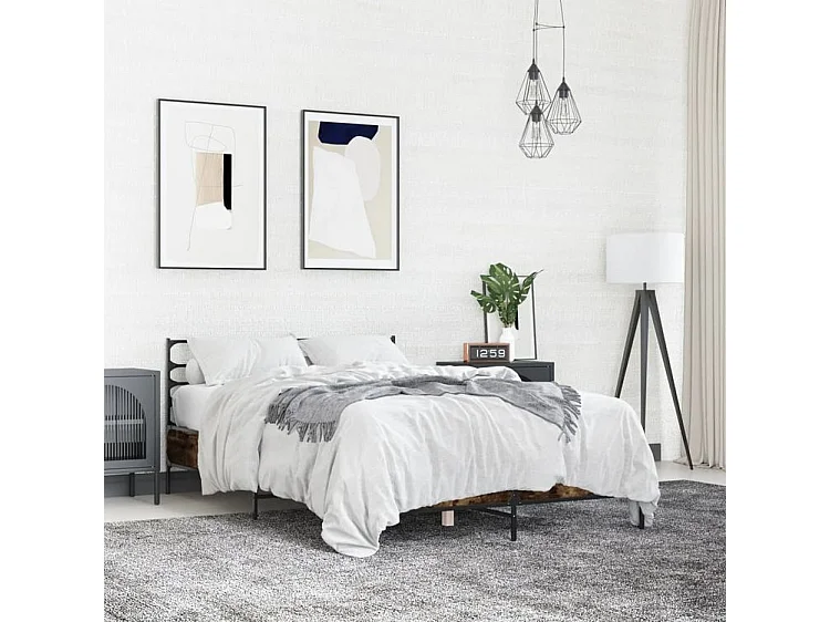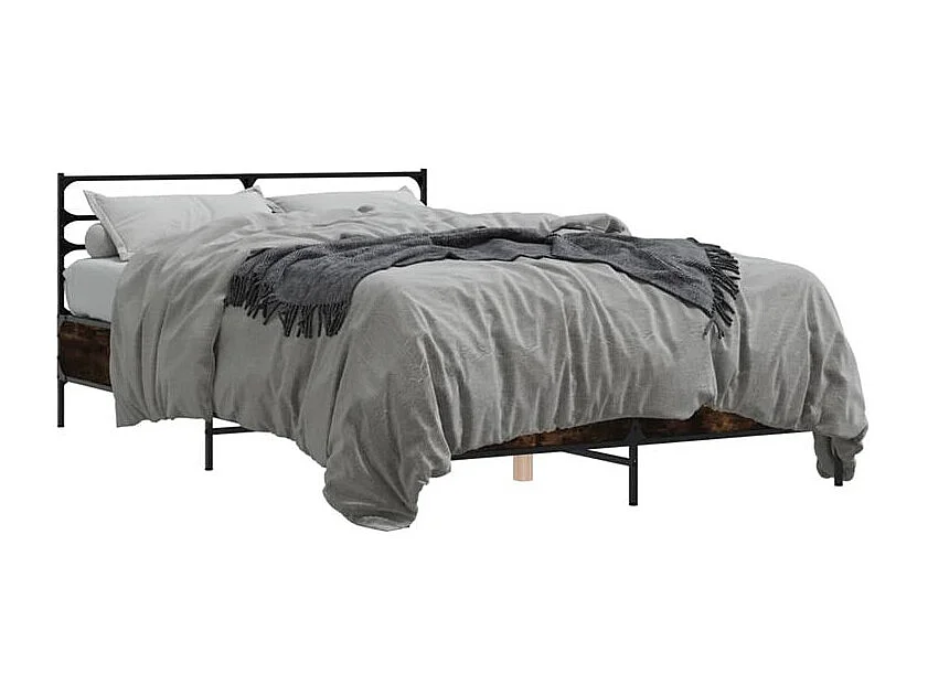 Cadre de lit chêne fumé 140x200 bois d'ingénierie et métal