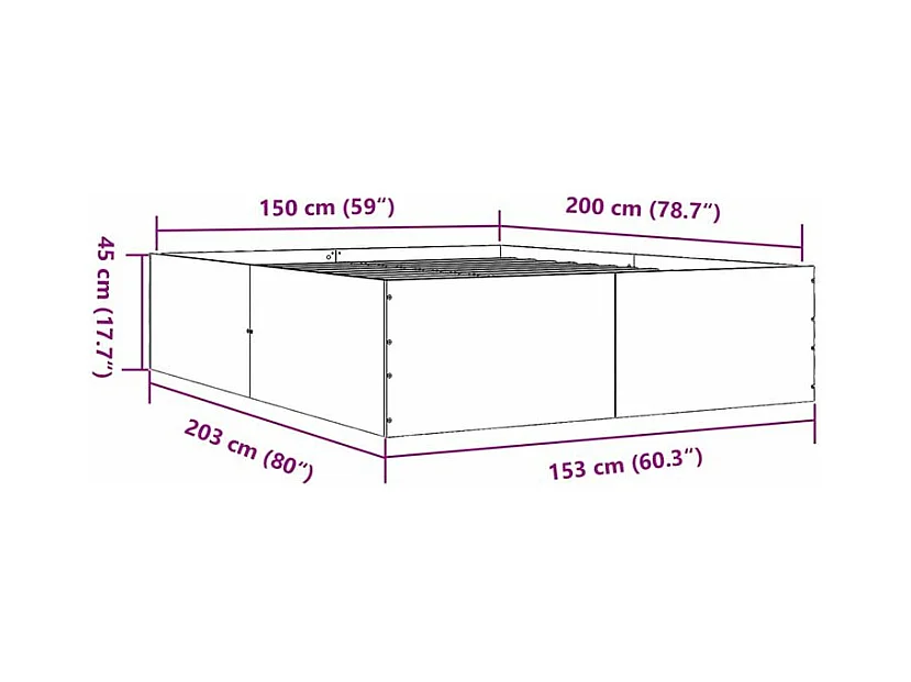 Cadre de lit chêne fumé 150x200 bois d'ingénierie
