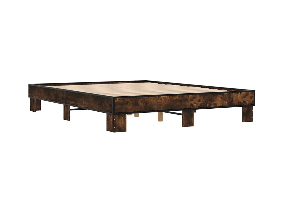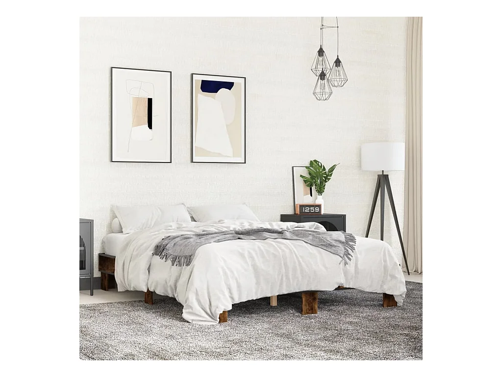 Cadre de lit chêne fumé 150x200 bois d'ingénierie et métal