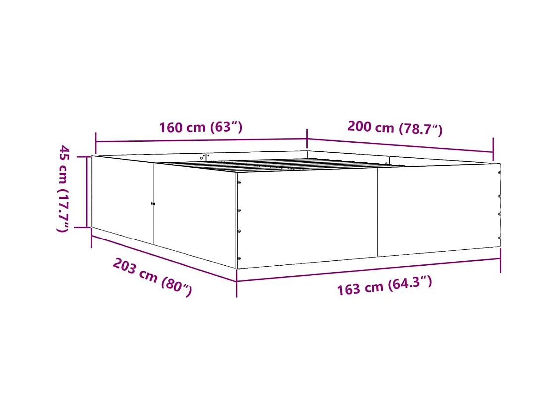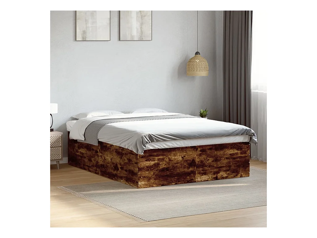 Cadre de lit chêne fumé 160x200 cm bois d'ingénierie