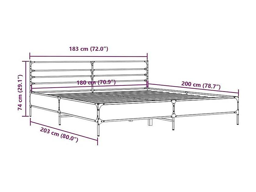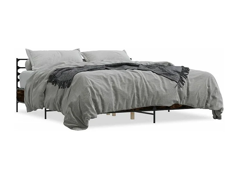 Cadre de lit chêne fumé 180x200 bois d'ingénierie et métal