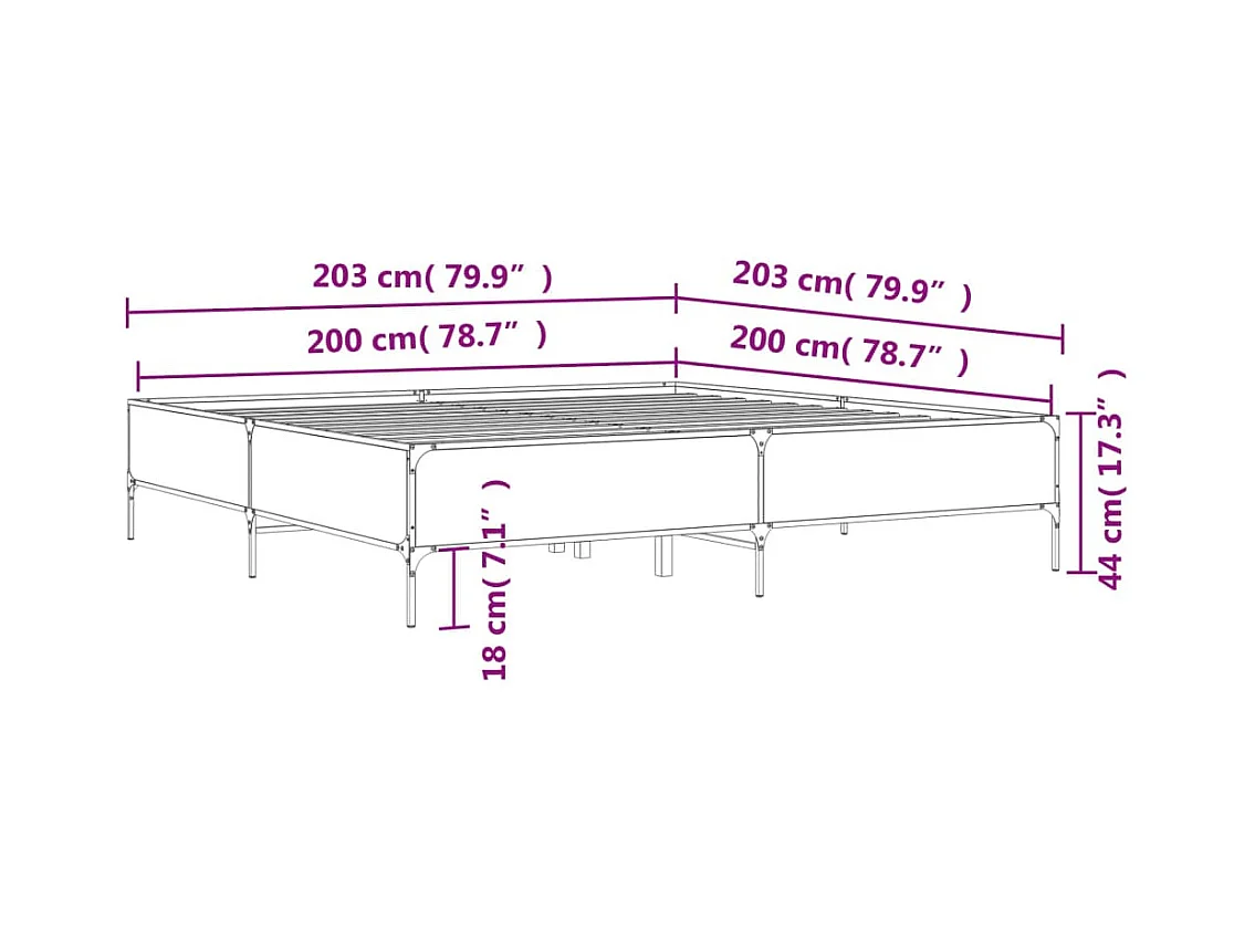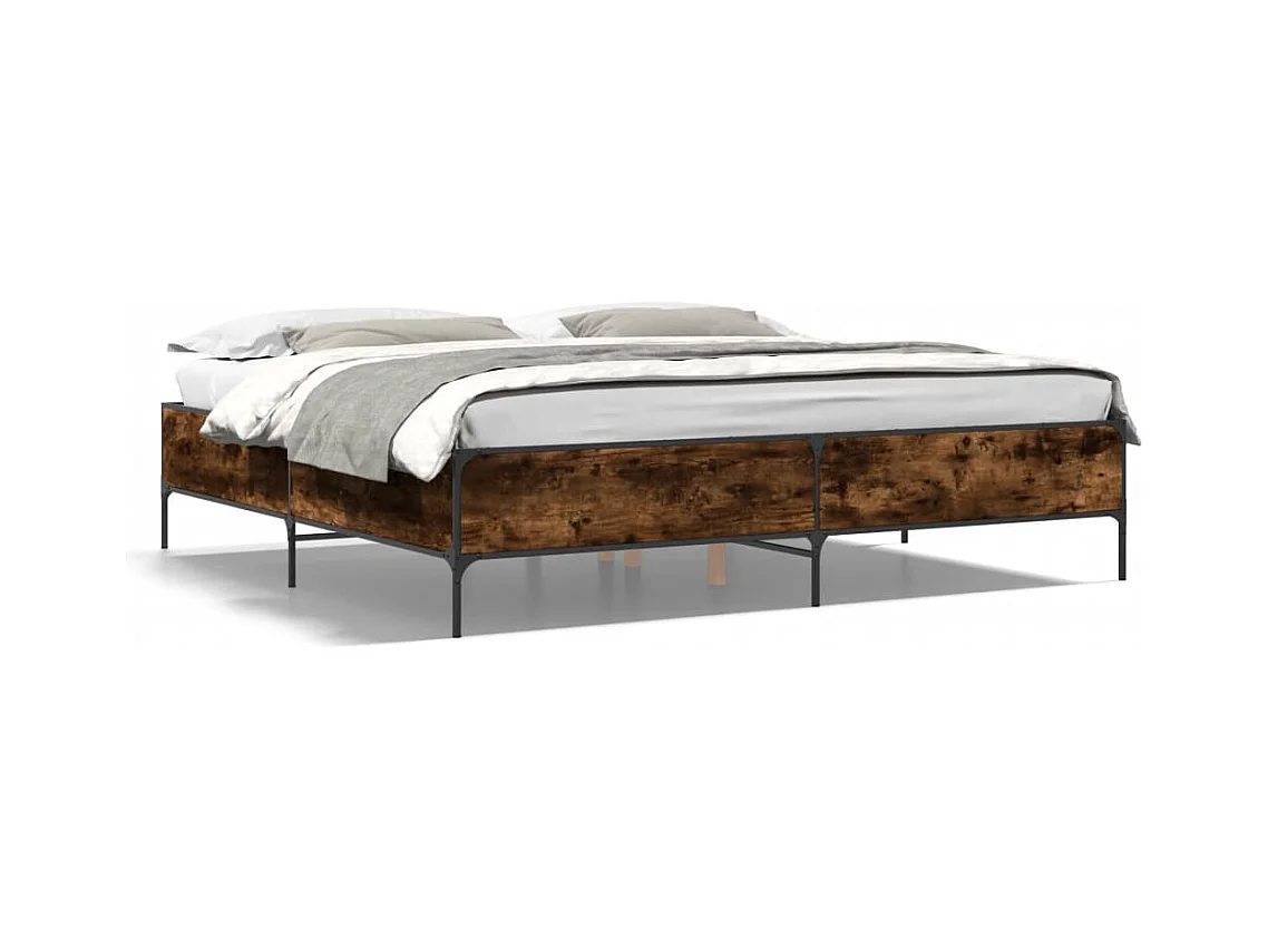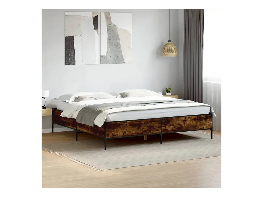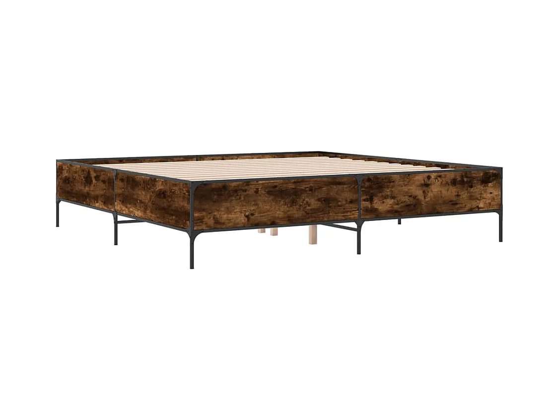 Cadre de lit chêne fumé 200x200 bois d'ingénierie et métal